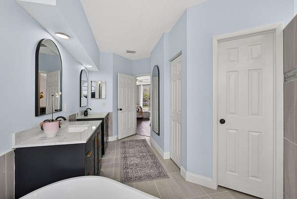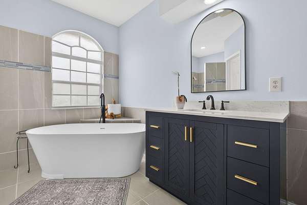 - Entrance Foyer, High Ceilings, Kitchen Island, Roman Tub, Split Bedroom Layout, Vaulted Ceiling(s), Walk-In Closet(s)