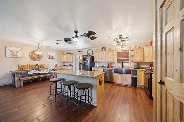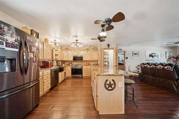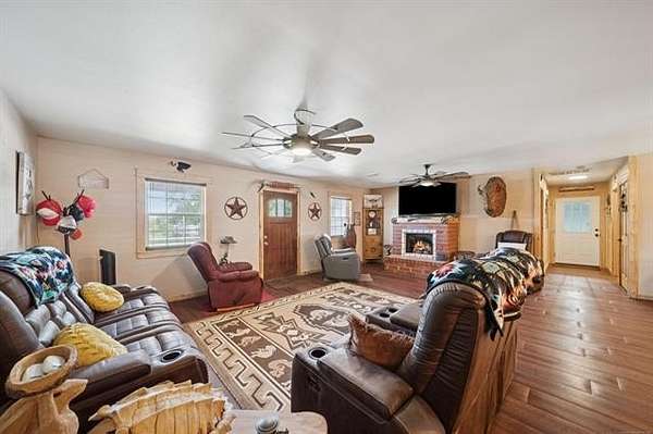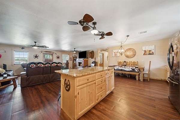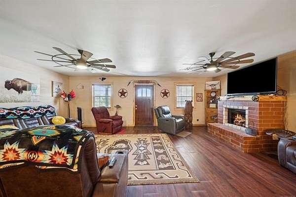 Like-new 1,856 sq ft (CH) home on nearly 2.5 acres! Featuring an open floor plan, this home feels bright and inviting the moment you walk in. The spacious living room includes a cozy fireplace, while the kitchen and bathrooms showcase granite countertops, including a large center island. The private master suite offers a huge walk-in closet, double sinks, and a full bath. The second bedroom also features a walk-in closet, and the oversized hall bath has plenty of space for your washer and dryer. An oversized garage fits up to 4 cars-or provides room to add a 3rd or 4th bedroom. Covered front and back porches overlook a beautiful backyard, perfect for relaxing outdoors. Bonus: a 30'x40' shop with full living quarters, bathroom, and washer/dryer hookups. With frontage on Hwy 56 Loop, this property also offers business potential.only 25 minutes south of Tulsa. Don't miss this rare opportunity-make it yours today!
