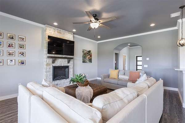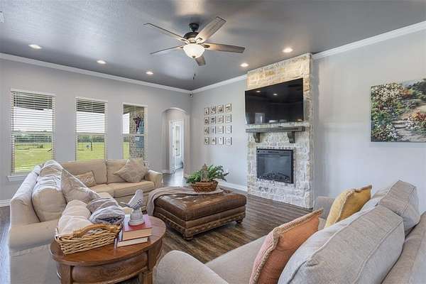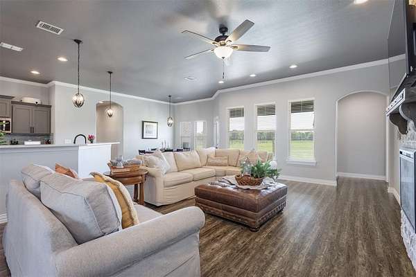 Est $3,121/moSpacious One Story living on approximately 1.5 acres. This modern farmhouse has something for everyone. With four spacious bedrooms, a homework area, large kitchen, living, dining and study, you will not be disappointed. The primary suite and bath are tucked away from the secondary bedrooms. Smart lay-out for entertaining and more. Spray in foam insulation and more. This home also contains a family sized storm shelter built by the homeowner. Can be removed. With lots of room to roam, make sure to see this beautiful home. It is waiting on you.
