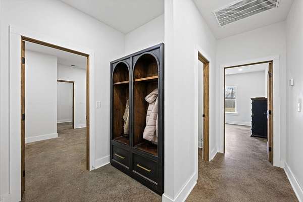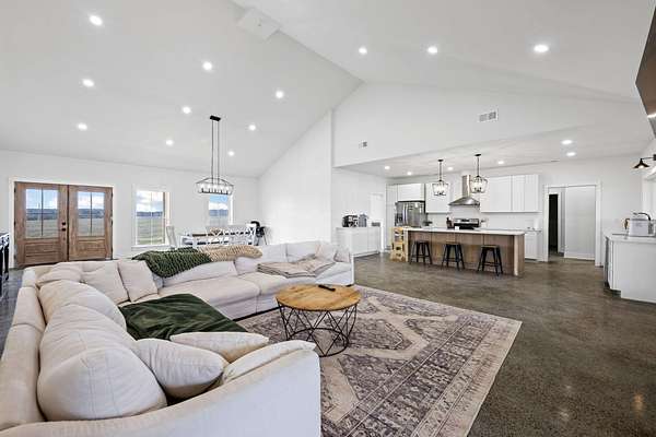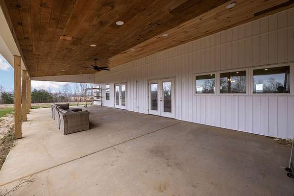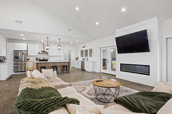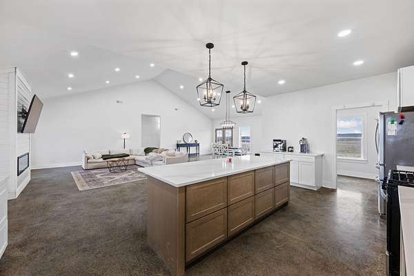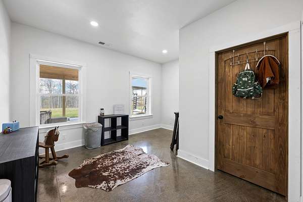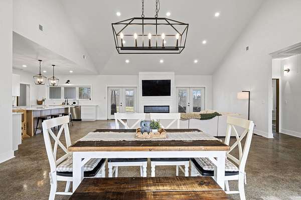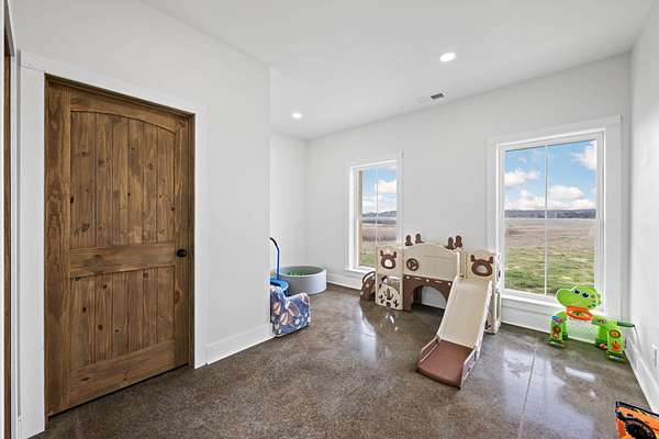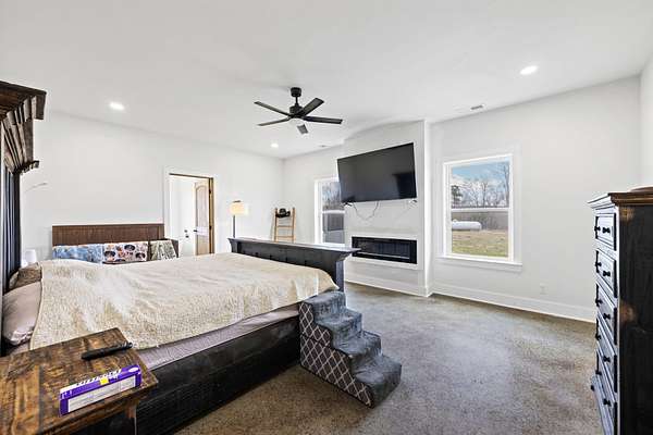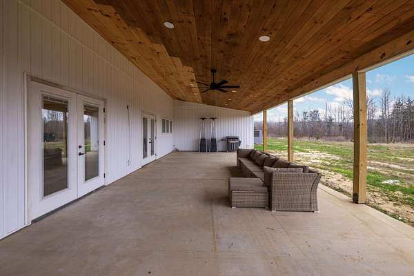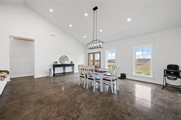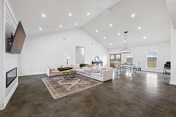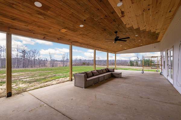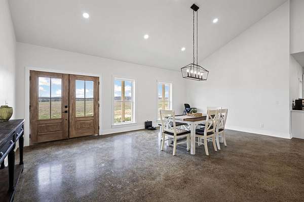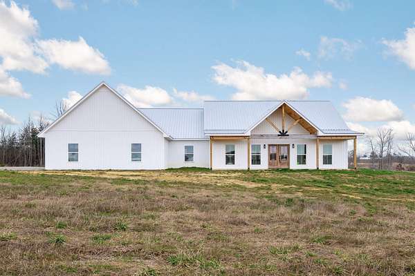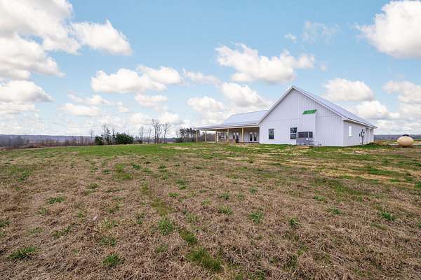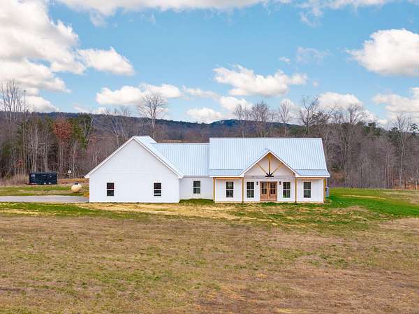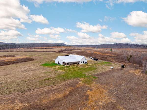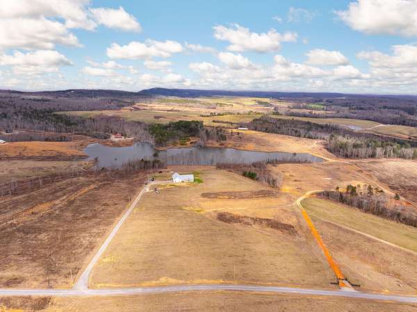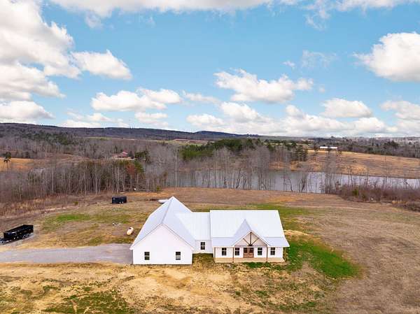 This stunning home offers 3,141 square feet of living space and sits on 15.75 acres within a private setting surrounded by just over 600 acres, centered around a privately owned 18-acre lake accessible only to only those whose property touches it. . The home features four bedrooms and two and a half bathrooms, with a welcoming living room that includes a fireplace and a soaring cathedral ceiling reaching approximately 21 feet high. Nine-foot walls throughout the home enhance the open and spacious feel, while an additional fireplace in the primary bedroom adds warmth and comfort. Just off the primary suite is a flexible office or bonus space ideal for working from home or a private retreat. The property includes a heated and cooled 900 square foot attached garage, a spacious 900 square foot covered back porch perfect for outdoor living, and a 240 square foot front porch. The home is served by a private well and includes a three-stage whole-home water filtration system. Power and fiber internet are already run to the house, and the home is wired with Cat6 cable in every room. Outdoor enthusiasts will appreciate the abundant wildlife, including deer, turkey, and ducks, with hunting permitted on the property. Farm animals are also allowed. The road is currently gravel but has been turned over to the county, which intends to pave the road and run utilities in the future, offering the option to utilize either private or public services.