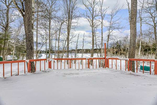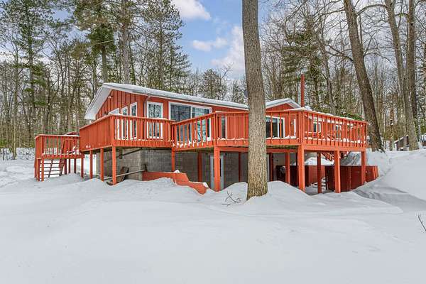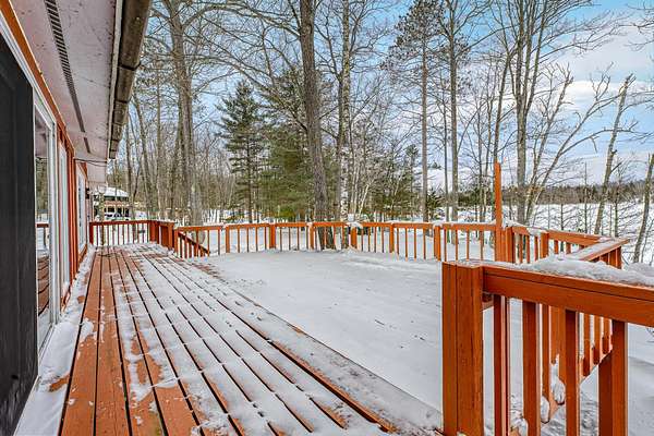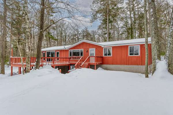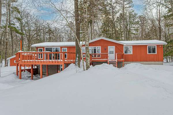 This 3 bedroom, 2 bath ranch offers an easygoing lakefront lifestyle with plenty of room to gather, relax, and enjoy the setting. The main level features a bright family room anchored by a gas fireplace and a full wall of oversized patio doors that frame lake views and open onto the sun deck. A practical kitchen, dining area, and additional living room round out the main floor. The finished lower level expands your living space with multiple walkout points, a second family room, full bath, laundry, and a bonus room perfect for an office or hobby space. Outside, you'll love the level yard leading to 200 feet of frontage on private Lotus Ln, plus a detached 2-car garage, blacktop drive, and more than 4.4 acres to roam, play, and soak in the Northwoods quiet.