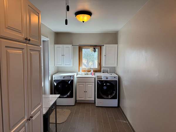 Welcome to this fantastic farmstead property located just west of Tribune, Kansas off HWY 96. Featuring 70 +/- acres, of which 68 +/- are productive farmland, this property provides a great opportunity to enjoy the country life, while maintaining an excellent proximity to town. The land features 66% Richfield Silt Loam 0-1% slope and 34% Ulysses Silt Loam 1-3% slope making this a quality opportunity for continued production. All owned mineral rights will transfer to the new buyer at closing. The home features a farmhouse aesthetic from kitchen to living/dining area. A renovated exterior with updated windows and siding in 2013 allows the home to be more efficient and enjoyable. Additionally, a large laundry/utility room is located between the large two-car garage and kitchen to help keep life organized and clean. The home offers two bedrooms upstairs along with a bathroom. Downstairs you will find a family room along with two additional bedrooms and a bathroom. Outside you will find a large quonset with workable and storage space for all your farm needs. Three additional grain bins are located on the property totaling 22,000 +/- bushels of storage. For further questions, or to schedule a tour of this property, contact us today!