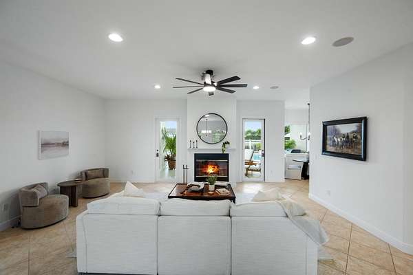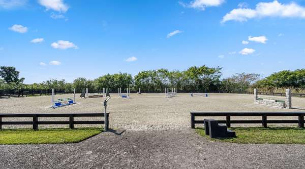 Set on 4.33 acres, this turnkey equestrian property features a beautifully updated 4 bedroom home with a split floor plan, spacious kitchen, new HVAC, fresh interior paint, new fixtures, & a resurfaced saltwater pool with new equipment and heater. The farm has been extensively improved with a new well, full-property irrigation, a 125' x 175' ESI all weather arena, 60' all weather round pen, 6 paddocks, underground drainage, and imported clean fill. The barn features 8 stalls with new stall doors, window bars, yokes, shutters, rubber mats, fresh paint, new AC in the tack and feed rooms, and new stall fans. Additional upgrades include a newer RO system, & landscaping. The property offers ample truck & trailer access and allows for expansion to 16 stalls . Enjoy exceptional sunsets and a fully modernized equestrian facility ready for immediate use.