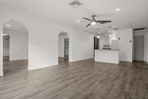 - Built-In Features, Ceiling Fans(s), Eat-In Kitchen, Kitchen/Family Room Combo, Open Floorplan, Primary Bedroom Main Floor, Split Bedroom, Stone Counters, Thermostat, Walk-In Closet(s)