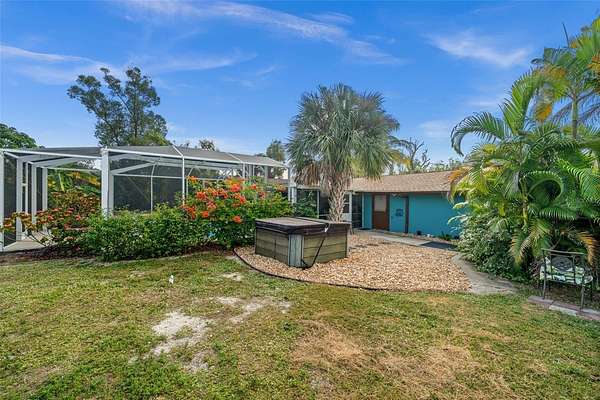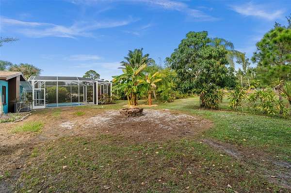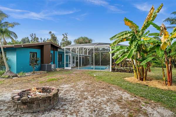 Secluded Florida oasis on nearly 2 acres in Punta Gorda with zoning that offers rare flexibility and future upside. This 3-bedroom plus office, 2-bath ranch-style home features 1,787 sq ft under air with no HOA or deed restrictions. Zoned RSF5, the property allows up to 5 single-family homes per acre, making it an ideal opportunity for investors or buyers looking to add additional homes for family while enjoying the existing residence. The home offers laminate flooring throughout and two modernized bathrooms, providing comfortable, low-maintenance living. Major updates completed within the last five years include a new roof and insulation, updated AC system, new electric hot water heater, updated electrical with new panels, new well with reverse osmosis system, energy-efficient pool pump, and new windows throughout. Outdoor living is highlighted by a resort-style pool and hot tub, covered carport, powered workshop ideal for hobbies or storage, and an underground dog fence serving both the front and backyard. The expansive grounds are a true homesteader's dream with an established edible landscape featuring a blue guava banana patch, over 50 pineapple plants, grape varieties, lime, papaya, avocado, mulberry, coconut, lychee, apple custard, black sapote, moringa tree, asparagus patch, and an irrigated garden area supplied by well water. A fire pit area completes the private setting, offering endless possibilities for personal use, multi-generational living, or future development.