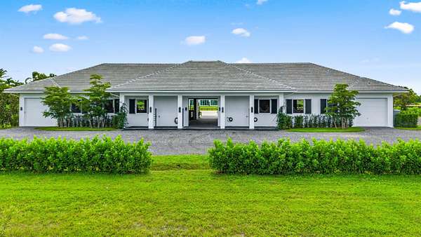 Located at 15385 Sunnyland Ln in Wellington, Florida, this Palm Beach Point estate is listed for $14,950,000. Set on over ten acres, it combines luxury, privacy, and top equestrian facilities. Featuring new buildings and ample room for expansion, options include adding a stable, covered arena, or guest house. This property offers a rare chance to own a premier residence in Wellington. Development Potential and Lifestyle Opportunity This estate gives buyers the opportunity to secure a newly built property with substantial space for future enhancements. Its flexible design supports a range of possibilities, including the addition of an extra stable and covered arena tailored to individual preferences and equestrian needs. Owners can expand and personalize the estate to reflect their vision and requirements. The modern amenities, expansive grounds, and potential for customized development make this property an exceptional choice for luxury living in Wellington. Prime Location and Equestrian Access Positioned on the east side of Palm Beach Point, the estate boasts direct access to the bridle trail and is approximately fifteen minutes away from the International Equestrian Center by horseback. Covering 10.8 acres, the property features separate, private entrances for both the residence and the stable, ensuring convenience and privacy for homeowners and equestrian activities. Land and Outdoor Features The grounds are extensively landscaped and include two independent water systems and two separate septic systems. Equestrian amenities consist of a 160' x 260' all-weather sand horse arena, a 110' x 260' "derby-like" grass field, five paddocks, a 70' round pen, and ample parking. The property is further enhanced by Bermuda sod, perimeter hedges, and mature trees, including Royal Palms, Shady Lady, Hong Kong Orchids, and Magnolias. Additionally, 5.02 acres of untouched land are available for future use or development. The residence spans 7,551 square feet and features a tall double front door leading into a dramatic living room with 15-foot ceilings and floor-to-ceiling glass doors. Engineered wood flooring, natural stone, and porcelain tiles create a sophisticated and unified aesthetic throughout the home. The spacious kitchen includes a walk-in pantry, high-end appliances, and a 7.5 by 7.5-foot quartzite island, catering to culinary pursuits. The master bedroom boasts 12-foot ceilings, double closets, and an en-suite bathroom. Three additional bedrooms also feature 12-foot ceilings, en-suite baths, and walk-in closets. A flexible room can serve as a bedroom or office and offers direct access to the main living area. Additional amenities comprise a laundry room, a three-car garage, and a large gym with views of the pool, grass field, and horse arena. Outdoor living is highlighted by a 1,100-square-foot covered patio with a lap pool and space for potential future enhancements such as a sauna and outdoor kitchen. Equestrian Facilities The 8,266-square-foot stable is designed for optimal ventilation and natural light, featuring tongue and groove wood ceilings. It offers twelve Rower & Rub stalls measuring 12' x 14' each, 14-foot-wide aisles, a tack room, feed room, laundry facilities, groom's bar, powder room, ample storage, four wash stalls, two grooming stalls, a riders' lounge, and a covered viewing patio. The stable is equipped with impact shutters, roll-up doors, and a fly spray system to ensure protection and convenience.
