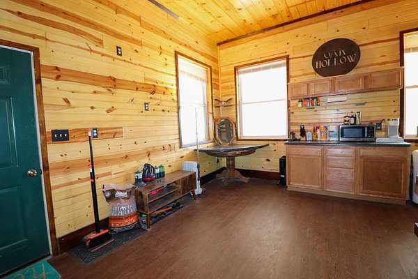 Tucked back off the road in mature hardwood timber, the 40' x 50' building provides a private, secluded feel and features a finished living area with a bathroom and shower--ideal for weekend stays, hunting trips, or a private retreat. Utilities including a well, septic, electricity, and phone are already in place, making it move-in ready.