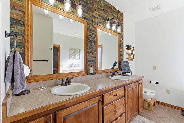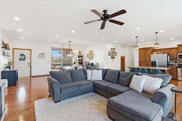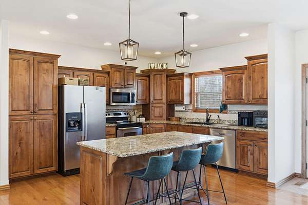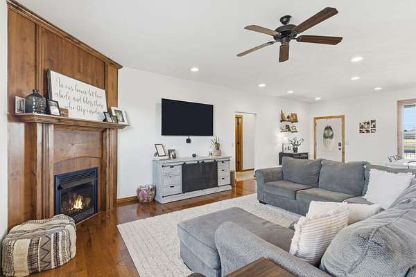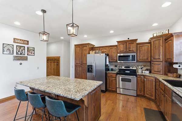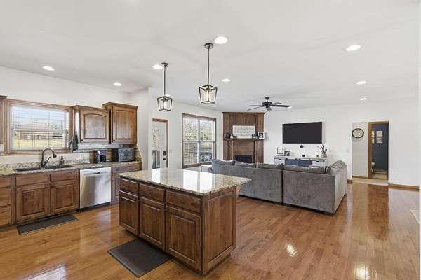 Welcome to this spacious retreat where comfort, privacy, and natural beauty come together. Set on 2.73 serene acres only a mile from town, this 3,678 sq ft home offers room to spread out both inside and out. Featuring 5 bedrooms, 3 full bathrooms, and a 3-car garage, the layout is ideal for growing households or hosting guests with ease.The inviting living room centers around a cozy fireplace with a beautiful wood surround, creating a warm and welcoming gathering space year-round. The kitchen is both functional and stylish, featuring granite countertops, plenty of cabinetry, and a center island that provides additional workspace and seating.A walkout basement adds flexibility for additional living space, recreation, a home office or storage, plus a storm shelter for ultimate peace of mind. Recent updates include new roof in 2024, new water heater in 2021 and new railings on the front porch. Outside, enjoy a wet-weather creek and picturesque bridge leading to a dedicated fire pit area. With expansive acreage, natural surroundings, and thoughtful features throughout, this property offers the perfect blend of comfort, space, and tranquility!