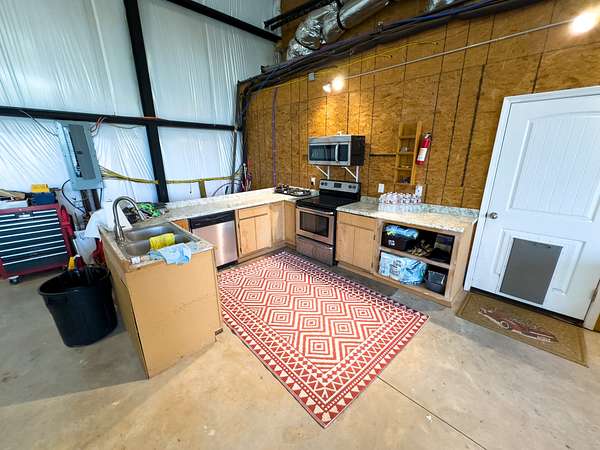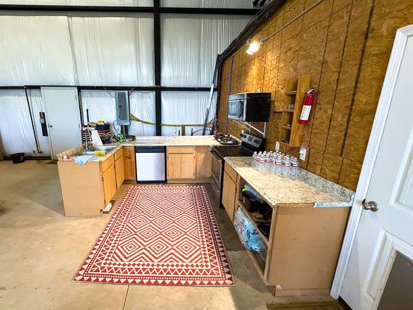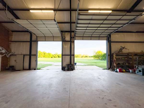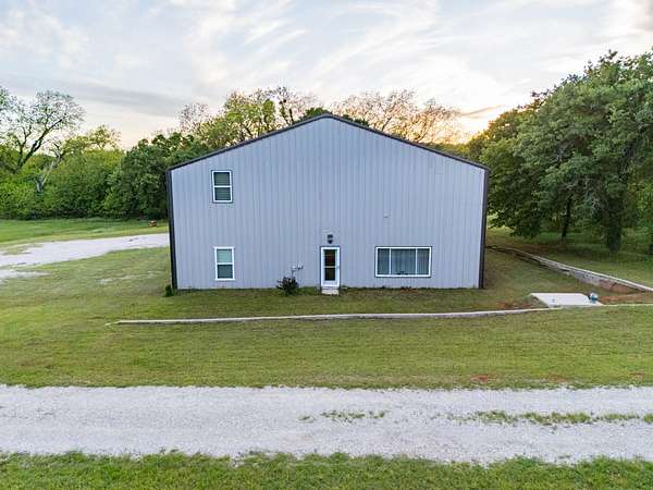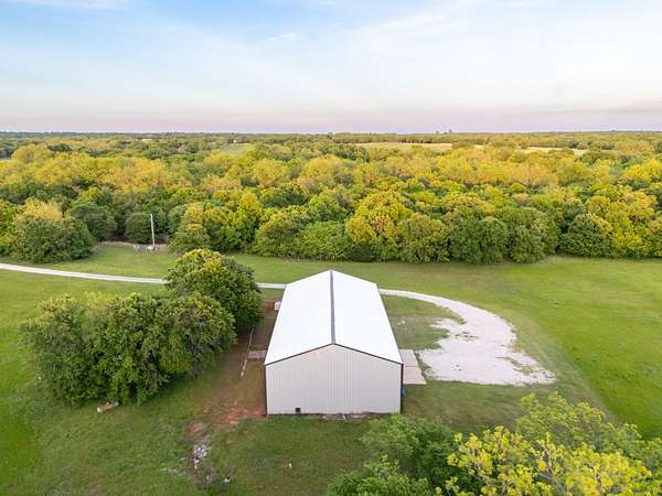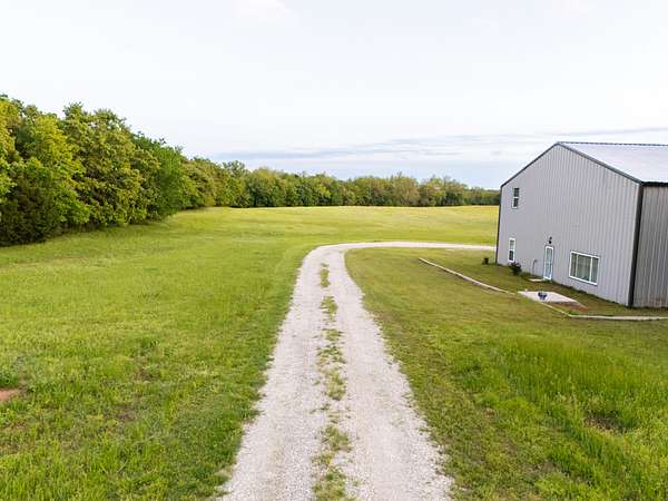 PRICE REDUCED!! This 95 +- acre property in Cleveland County, Oklahoma offers the perfect blend of luxurious country living, functional space, and natural beauty. At its heart is a stunning 5,000 +- sq. ft. steel-framed barndominium, thoughtfully designed for comfort and utility. Of the total space, 2,652 +- sq. ft. is dedicated to living quarters, while the remainder includes a massive heated shop with 12-inch concrete floors and a second kitchen -- ideal for work, storage, or entertaining. The main living area features soaring 30-foot ceilings and expansive windows that flood the space with natural light. The high-end kitchen is equipped with Frigidaire appliances, a pot filler above the stove, and generous cabinetry, making it both stylish and functional. Upstairs includes one bedroom with a walk-through closet and a luxurious bathroom featuring a walk-through shower, along with a lofted living space equipped with carpet. Downstairs features one bedroom, an additional room that can serve as an office or second bedroom, 1.5 baths, and heated stained concrete flooring that adds a modern touch. Additional features include two washer and dryer hookups, multiple vanities, a tankless water heater, and a storm shelter for peace of mind. Outside, the property is equally impressive! A new gate opens to a long gravel driveway leading to the home, surrounded by a mix of cleared yard space and mature trees. A pond attracts wildlife such as deer and turkey, offering excellent recreational and hunting opportunities. The entire acreage is fenced, and the barndominium's roof and guttering were serviced just two years ago. With paved road frontage and a private, scenic setting, this property offers both accessibility and seclusion. It also provides excellent hay production potential, yielding approximately 160-180 bales annually. Don't miss this rare opportunity to own a one-of-a-kind barndominium on beautiful, expansive acreage -- perfect for peaceful country living with space to grow, work, and enjoy the outdoors. Located just 15 +- minutes from Purcell, 30 +- minutes from Norman, and 50 +- minutes from Oklahoma City. All showings are by appointment only. If you would like more information or to schedule a private viewing, please contact Zac Williams at (918) 261-6094 .