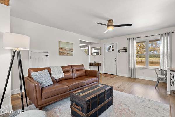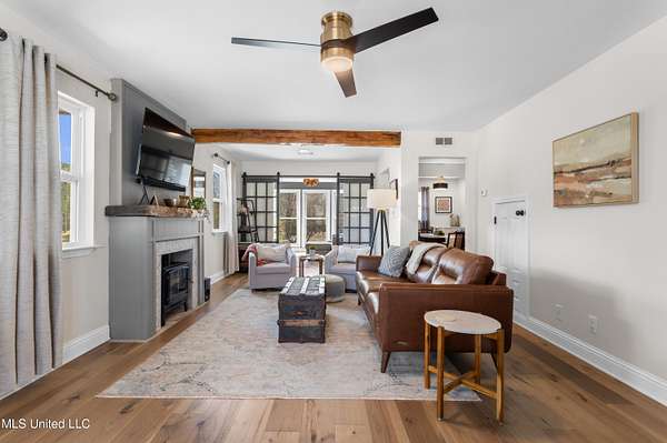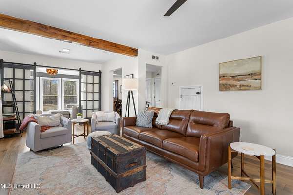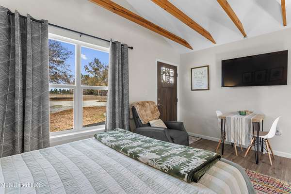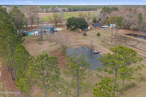 WOW!!! Properties like this do not come around often! Enjoy peaceful country living on two landscaped, tree-lined acres with a private pond, conveniently located minutes from shopping, dining, and major highways. This fully renovated 4BR/2.5BA home offers 2,025 sq ft of updated living space plus a detached guest house with loft and full bath. Inside you'll find an updated kitchen with island, dining room, spacious living area with electric fireplace, and a separate study/sitting room. Major improvements in the last five years include roof, HVAC, water heater, siding, windows, flooring, kitchen, porches, and more, making this home truly move-in ready. A humidity-controlled crawl space and whole-house water filtration system add long-term value and efficiency. A large barn adds incredible flexibility, whether you need storage, workshop space, or room for recreational toys and equipment, the possibilities are wide open. The backyard is built for entertaining with a private pool, outdoor bar area, and patio furniture that remains. Kitchen appliances also convey. Additional features include an RV slab with power hookup and a detached guest house with loft bedroom, kitchenette, full bath, and split HVAC. Guest house includes a loft sleeping area, efficiency kitchenette, full bath, and split HVAC (2021). Strong flexibility for in-law suite, rental potential, or private office. Rare combination of acreage, updates, and location make this a rare find! Schedule your tour today!
