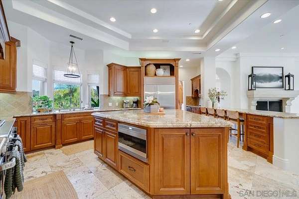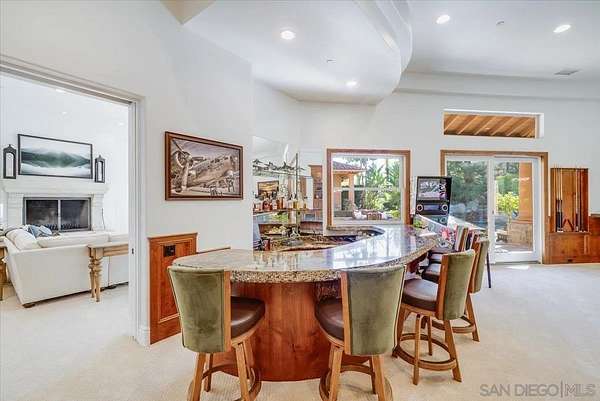 - Bar, Built-Ins, Granite Counters, High Ceilings (9 Feet+), Kitchen Island, Open Floor Plan, Pantry