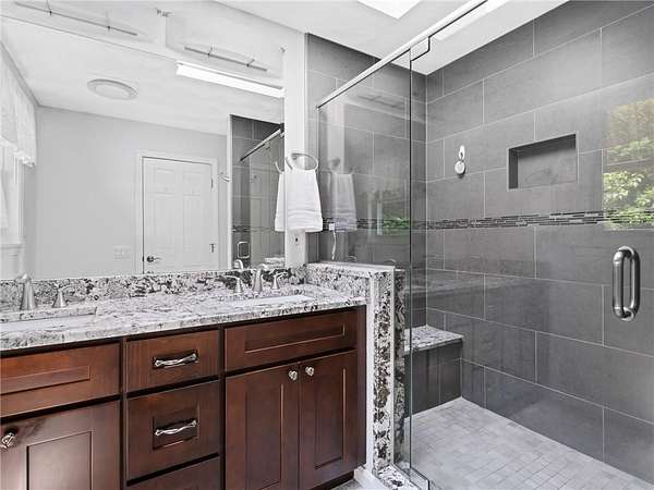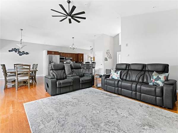 Ridgewood Estates. Set on a serene 1.84-acre private wooded lot, this sprawling contemporary ranch offers exceptional versatility with a main-level in-law apartment featuring its own private entrance. The main residence showcases an updated kitchen with cathedral ceilings, seamlessly open to the dining area and living room with a brick fireplace. The primary bedroom includes an updated en-suite bath. The home has four additional bedrooms and a today's full bathroom. The in-law suite, conveniently located on the main level, offers a full kitchen, family room, bedroom and full bath. A flexible fifth bedroom may also serve as a dining room within the in-law apartment. The finished lower level offers exceptional flexibilty with three seperate rooms, ideal for a family room, home office, recreation area or additional space to suit your needs. The professionally landscaped, park-like grounds provide privacy and tranquility. A rare four-car garage completes this impressive property.