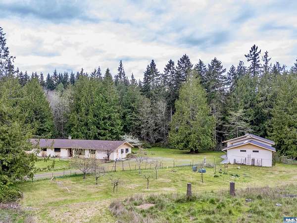 Tucked into a peaceful rural pocket in Agnew—perfectly positioned between Port Angeles and Sequim—this private 5-acre property offers the space and freedom you’ve been looking for (no HOA!). Just a short stroll to the Olympic Discovery Trail, the bright and spacious 4-bedroom, 3-bath home features a welcoming layout with a large skylit kitchen, cozy woodstove living room, and flexible spaces for a library, office, or den. Outside, the possibilities really open up. Two level 2.5 acre parcels provide room for animals, gardens, or future plans, complete with a powered barn, stalls, tack room, and open pasture. Multiple shop and garage spaces—including a large 4-door shop with tall RV doors and a heated detached garage/shop—offer incredible versatility for hobbies, storage, or workspace. Mature evergreens provide privacy, while fruit trees and sunny fields add to the country charm. With a new 4-bedroom septic (2023) and new air handler (2025), this is rural living with convenience and breathing room to spare.