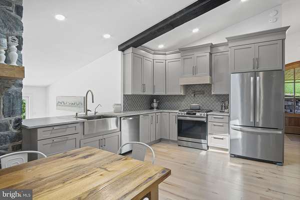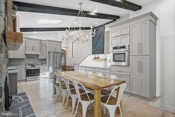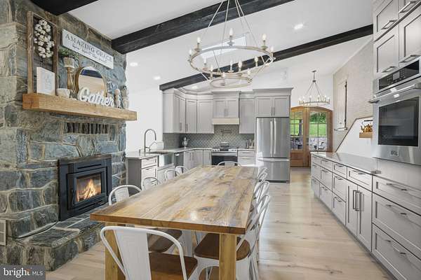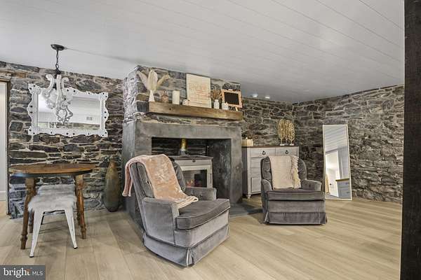 Welcome to 154 Calvary Church Road, where timeless craftsmanship meets curated living on 6.69 private acres. This truly exceptional estate is fully reimagined, blending timeless 1860s farmhouse charm with magazine-worthy modern upgrades-crafted not for resale, but for legacy living. Tucked away on nearly 7 private acres of land, with a bank barn, pond with fountain, multi-level veranda overlooking a brick courtyard, and low maintenance landscaping, this one-of-a-kind residence is both a dream home and a legacy in the making. Originally constructed circa 1864, this fully transformed farmhouse compound is more than a home-it's a lifestyle canvas for the visionary. Whether you're seeking a multigenerational haven, space to homeschool and grow, a holistic lifestyle rooted in the land, or simply a forever dream home that stuns at every turn-this property delivers. The layout provides flexibility: offering the option to live as one cohesive, expansive residence, or to utilize the original farmhouse wing-complete with its own entrance, 3 bedrooms, 1.5 baths, and a converted kitchenette-for guests, extended family, or optional Airbnb use. And yet, it all flows beautifully as a single home, with gathering spaces and quiet corners thoughtfully woven throughout. At the heart of the home, a show-stopping designer kitchen-the kind you'd expect to see in Architectural Digest-anchors the living space with a dramatic stone fireplace, custom cabinetry, pot filler, skylight, and an abundance of counter space designed for both daily life and unforgettable moments. The primary suite is a retreat in every sense: featuring an exposed original stone wall, wood stove, coffee bar, and soundproofed shiplap ceiling, with direct access to the brick patio overlooking the side yard and pond. Just a few steps up, a one-of-a-kind bedroom showcases a wall of windows, lofted bonus space, hanging swing chairs, an ensuite bath, and a second laundry area-ideal for older children, guests, or creative use. Every bathroom has been completely remodeled, and each finish reflects a harmony of modern luxury and timeless design. The list of improvements is as intentional as it is impressive: a mahogany double-door entry, high-efficiency Low-E windows, three central vacuum systems, UV air purification, a fully reimagined mudroom and pantry wing, drainage enhancements, brickwork restoration, and extensive soundproofing in the lower level. Even the historic bank barn was reimagined with fresh paint, and an oversized RV bay with a poured concrete floor- offering the potential to convert into anything from a workshop to an event space. Every inch of this property has been meticulously curated with intention, offering the rare opportunity to live in a home where history, design, and future potential all align. The only thing missing is the next owner who will love it as deeply as it was built to be loved-nestled in a setting that offers privacy without isolation, where you're just minutes from daily essentials, yet surrounded by quiet, sky, and open space.