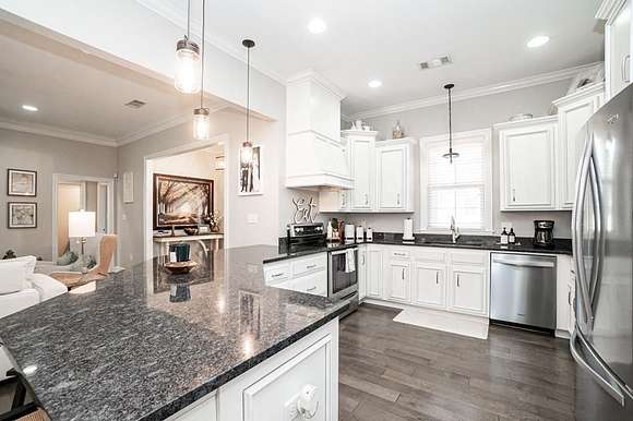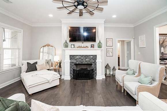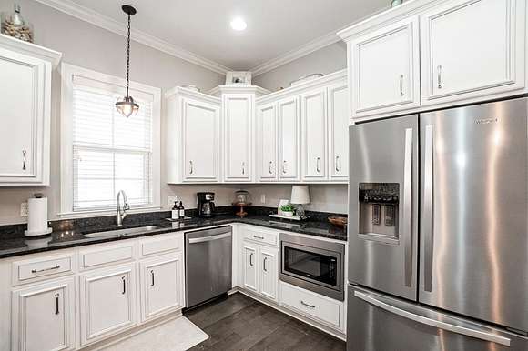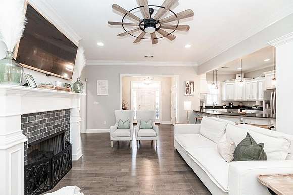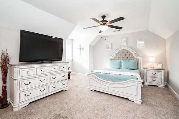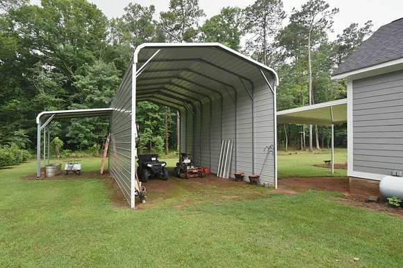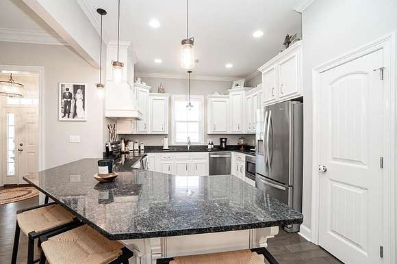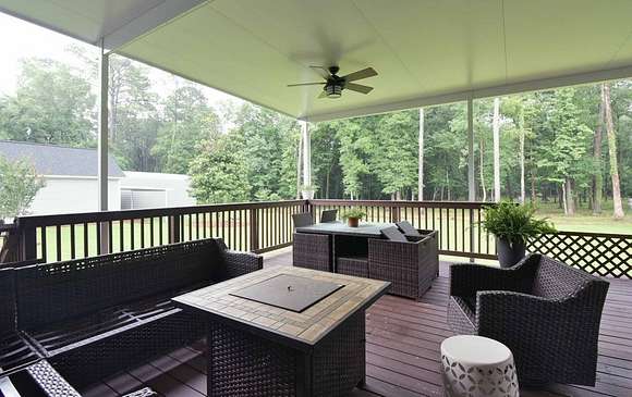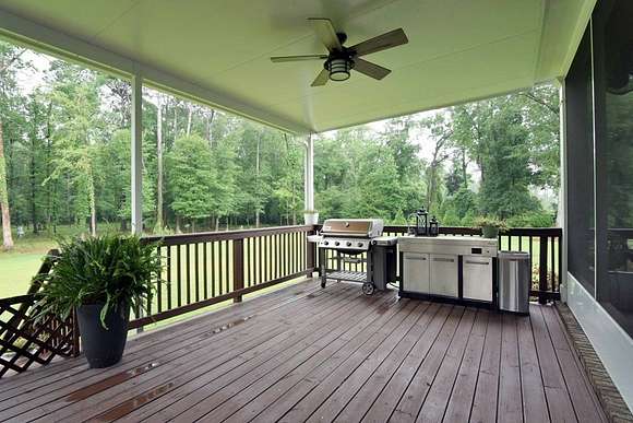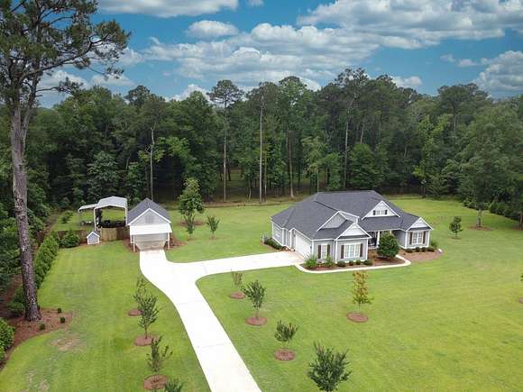 NEW LOWER PRICE! EXPERIENCE BEAUTIFUL COUNTRY LIVING AT 154 CANVASBACK DRIVE! AN ABUNDANCE OF WILDLIFE! Nestled on 5.41 acres with 300 feet of Reedy Creek frontage, this stunning home offers 2,640 sq. ft. of living space, 800+ sq. ft. of porch space, 4 bedrooms, and 3 full baths--the perfect blend of comfort and nature! Step onto the rocking chair front porch and into the spacious living room, where hand-scraped hardwood floors, abundant natural light, and a gas log fireplace create a warm and inviting atmosphere. The open-concept kitchen and dining area feature custom white cabinetry with pencil edging details, granite countertops, a decorative vent hood, stainless steel appliances, and a large eat-in space--ideal for gathering with family and friends. The luxury primary suite on the main level includes a tray ceiling, double vanity, soaking tub, MASSIVE tiled shower, and his-and-hers walk-in closets. Two additional downstairs bedrooms, also with beautiful hardwood floors, offer convenient access to a shared bath. Upstairs, you'll find a secondary suite with a spacious bedroom, private bath, and walk-in closet, perfect for guests or multi-generational living. Outdoor living is just as impressive, with a HUGE screened porch and open deck spanning approximately 750 sq. ft. The porch features insulated ceiling panels and ceiling fans for year-round comfort. Additional amenities include: Attached 2-car garage with storage space - 20x30 wired workshop with front & back covered storage - Separate RV/boat shelter with lean-to storage - Professional landscaping with a tree-lined driveway, decorative trees & shrubs, and sod in both the front and backyard - Full sprinkler system (front & back) for easy maintenance! This beautiful cul-de-sac lot extends over 950 feet deep, going far beyond the cleared yard space. Bordering a 400+ acre wooded tract, the property attracts an abundance of wildlife--deer and turkey sightings included! NOT in a flood zone and located in highly sought-after West Lee County--this is country living at its finest! Don't miss this rare opportunity--schedule your private tour today!