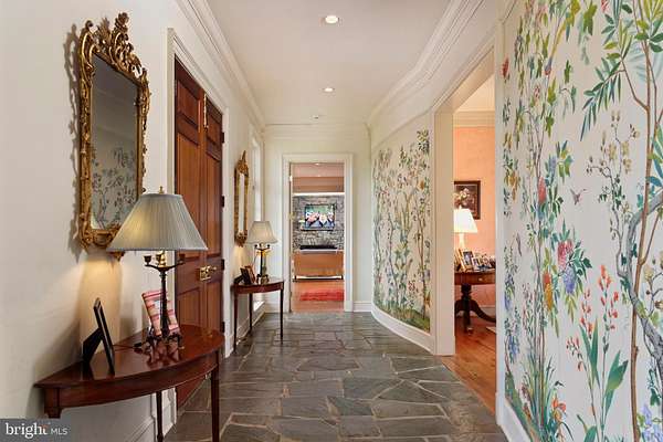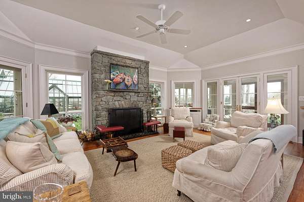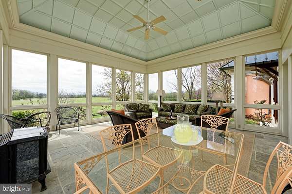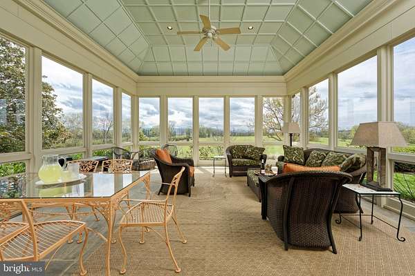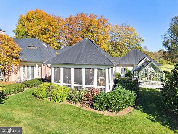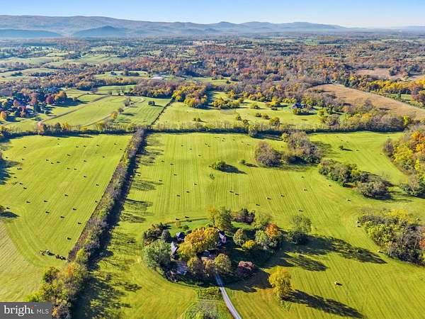 "Salterhill" sits atop a knoll in the heart of 145 acres, offering sweeping views of the Blue Ridge Mountains. Designed by Charlottesville architect Jay Dalgliesh and built in 1989 the 7,000+ sq ft home features 6 bedrooms, 5 full baths and 2 half baths. The farm spans two parcels beautifully blending open hay fields and mature hardwood forest. Surrounded by large farms protected by conservation easements, Salterhill remains unencumbered and offers tax credit potential as well as having four additional dwelling unit rights. A winding drive through the woods and over two cattle guards lead to a pea gravel courtyard framed by trees and mature landscaping. A flagstone path welcomes guests to the mahogany double doors. Inside, a curved front hall with Zuber French woodblock wallpaper panels opens to the light-filled living room, where a fireplace and a wall of windows showcase the southern views. The formal dining room, with chair rail and intricate moldings, flows seamlessly from here. The gourmet kitchen, remodeled in 2021, features a tray ceiling, large island and an adjoining family room anchored by a floor to ceiling Albemarle greenstone fireplace. Off the kitchen hallway are a wet bar, gardening nook with antique soapstone sink and a powder room. In the back hallway, which connects to a two-car garage, are large pantry closets. A four-season room with interchangeable screens and glass panels offers year-round enjoyment of the views. The main level also includes a pine paneled library with fireplace and passage to the primary suite. The luxury primary suite has built-ins, large bath with dual vanities, dressing table and separate walk-in closets. There are two more-bedroom suites, laundry room and powder room. Upstairs a guest suite with full bath and walk-in closet is joined by attic storage. The walk-out lower level offers two more bedrooms with a Jack & Jill bath, a spacious recreation room, full kitchen, and private entrance-ideal for guests or an in-law suite. The original landscape plan was done by the renowned landscape architect, the late Meade Palmer. More recent changes and additions have been made by Nicole Seiss of LanDesign. Nature lovers will appreciate the magnolia, sycamore, pin oak, beech, red maple, weeping willow, and horse chestnut trees, as well as two large perennial beds. The Hartley Botanic greenhouse from England and tiered vegetable beds enhance the property's charm. Perfectly located - within the historic Blue Ridge Hunt territory, 10 minutes to the Virginia State Arboretum and Shenandoah River, 20 minutes to Sky Meadows State Park, 50 minutes to Dulles International Airport and 90 minutes to Washington, D.C.