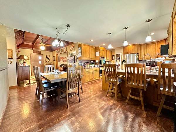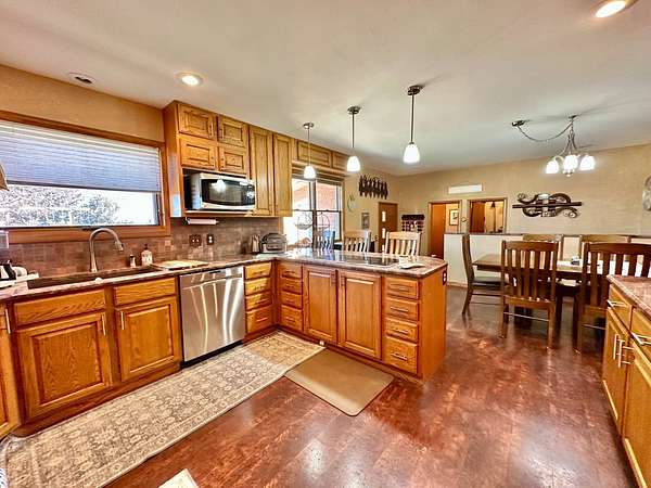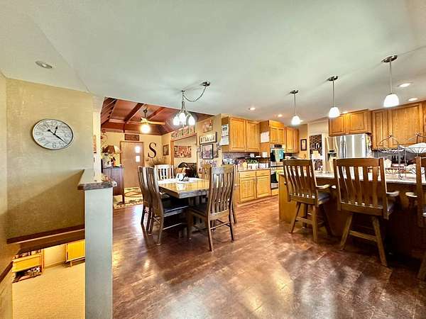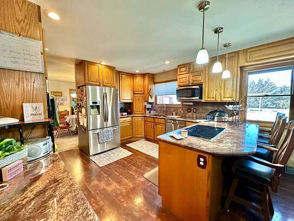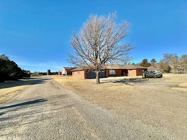 FOR SALE: 154 County Road 9 | Winona Kansas | $725,000. Accessed by all paved highway except for a half mile of graveled and well-maintained county road, and surrounded by a fantastic tree windbreak, this 12-acre farmstead is an extensive establishment with space and flow to meet all your needs. From farming, to cattle, to homesteading, to country relaxation and living, this property has a beautiful 5,000 square foot ranch-style home, 3 large shops, and a multitude of different amenities to make your life and business flourish. Surrounded by well-maintained buffalo grass, the 5,000 square foot home has had numerous updates including windows, roof, kitchen, bathrooms, and more. The wood ceiling foyer greets you at the front door and sets the stage for this ranch style beauty. With 5 bedrooms, 3 bathrooms, large living areas, wood-burning fireplace, open layout kitchen overlooking the backyard patio and swing set area, and a full finished basement, there is space for everyone. Adding to the list of desired home traits are formal and informal dining areas, main level laundry, plentiful storage, convenient mudroom, bonus room space, an office with an entire wall of cabinets, and a whole house water filtration system. The basement has a massive 1,400 square foot living room, a kitchenette, an egress window in one of the bedrooms, the updated bathroom, and even a concrete safe room for storm shelter. There is also an attached two-car garage leading directly into the kitchen area. Building 1 is a steel-framed 40' x 80' fully functional shop with 1 overhead door, a 40' sliding accordion door, two walk-in doors, and concrete floors. The north half is fully insulated and heated. All equipment and inventory, from tire machines and air compressor with a 500 gallon air tank, to work benches and drill presses, and everything in between, are included, making this an instant asset. Building 2 is a large 67' x 120' post-framed shop with a terrific 18' x 30' overhead door, one walk-in door, and partial concrete floor with the remainder graveled. Building 3 is a steel-framed 50' x 125' shop with dirt floor. All buildings are in excellent condition and wired for 220V electrical service. Also included with the property are numerous other valuable features like the large, underground-wired generator housed in a nice 10' x 15' building. This generator is hooked directly to the main service and with a flip of a switch, feeds directly from its 300-gallon fuel tank and powers the property in case of a power outage. The water well has been recently updated and supplies water to the home, shop, various hydrants, and the two heated livestock waterers in the corrals. There are 4 grain bins (3-3500 bushel and 1-9500 bushel) with power and motors. There is also an older house with maintained roof and windows, for cold dry storage. This property offers an incredible opportunity for country living in Thomas County Kansas! We invite you to tour the property and experience the serene countryside for yourself. Text listing agent for pin drop location. Located 16 miles south of I70 exit #45. Or 5 1/2 miles north of Winona Kansas.