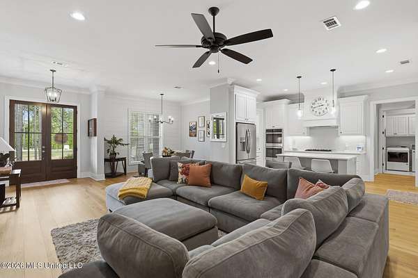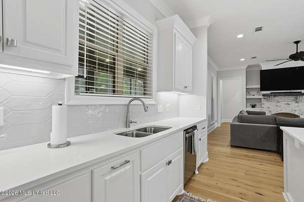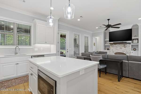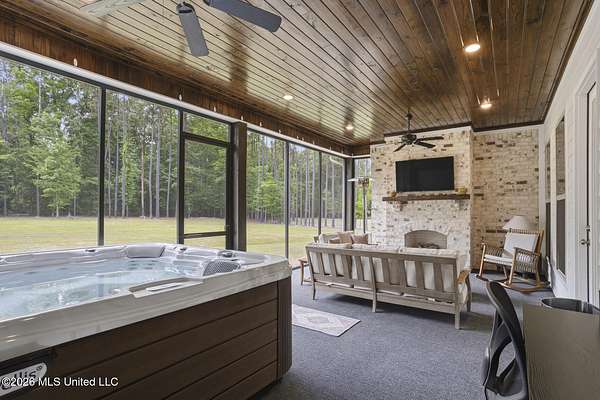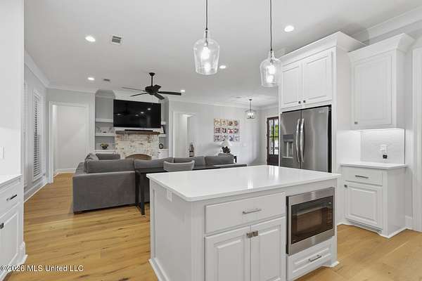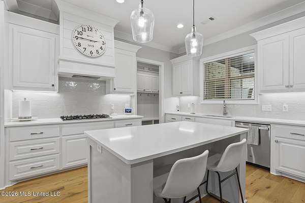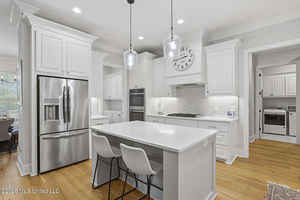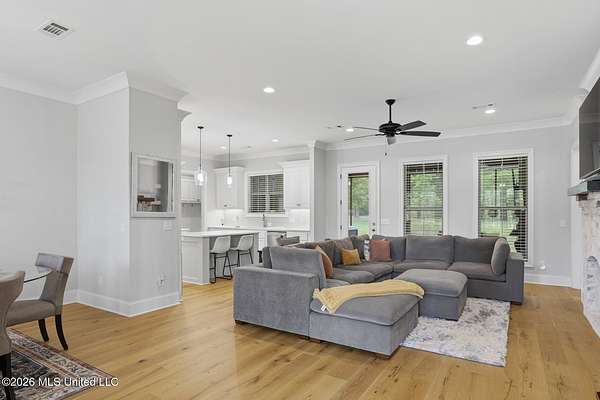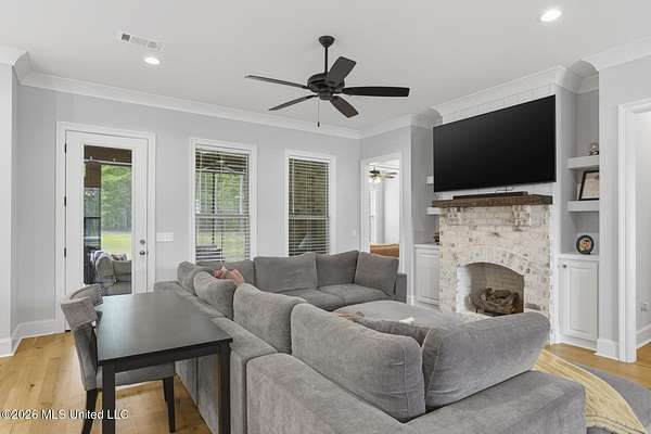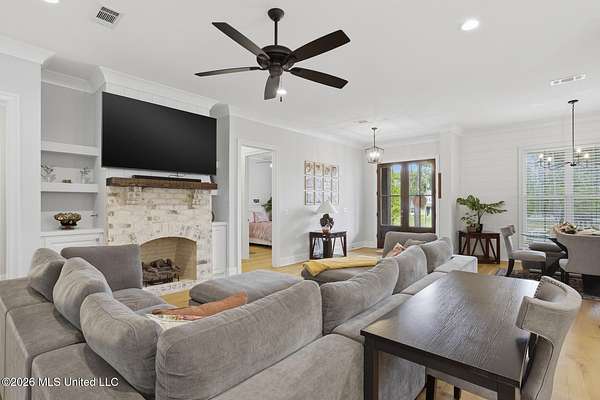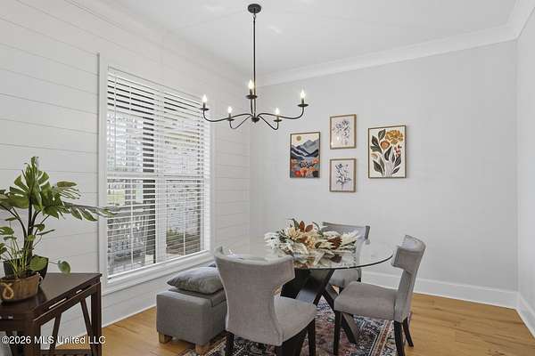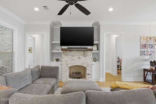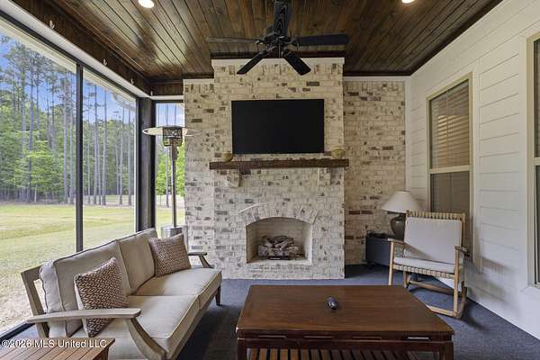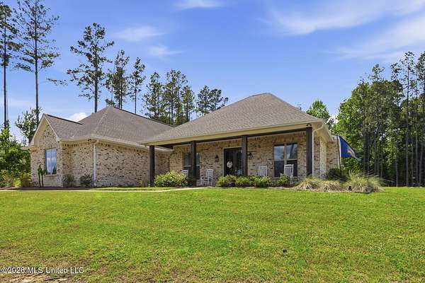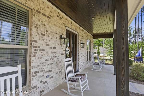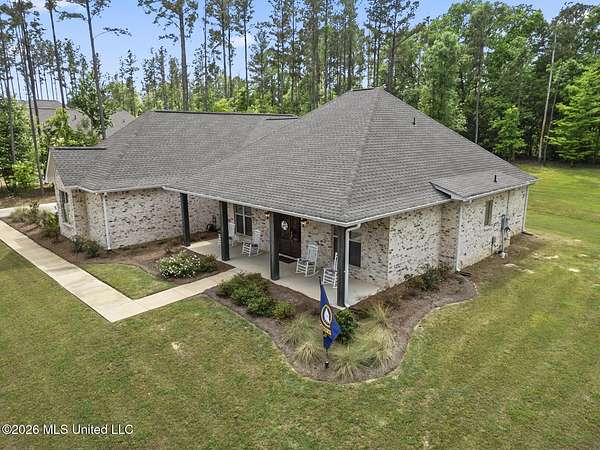 Experience better-than-new luxury in this sprawling open-concept home surrounded by serene pines. Featuring wood floors, designer finishes, and marble countertops throughout, every detail exudes quality. The chef's kitchen is a showstopper with a massive marble island, walk-in pantry, and breakfast nook, flowing seamlessly into a living room anchored by a cozy fireplace and custom built-ins. Retreat to the primary suite featuring dual walk-in closets, a soaker tub, and a deluxe shower. Three additional bedrooms are tucked away for privacy, including one with an en-suite bath. Screened-In Porch: Upgraded with a fireplace--perfect for crisp Mississippi nights. Premium Finishes: Marble in every bathroom and a stunning formal dining room. Location: Minutes from Hwy 25, the Reservoir, Dogwood shopping, and top-rated schools. Private, polished, and move-in ready. Call your REALTOR(R) to schedule a showing today!