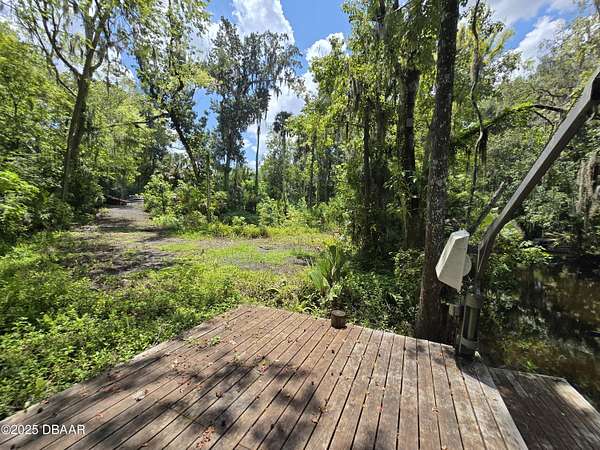 Discover a unique opportunity to own 80 feet of direct river frontage on the easternmost channel of the scenic Wekiva River. Located in Sanford, Florida and tucked away in a quiet, hidden location yet just minutes from shopping, dining, and everything Central Florida has to offer. This lot offers the perfect balance of convenience and seclusion. The property is thoughtfully equipped with a heavy-duty dual electric boat lift, an attached floating dock ideal for kayaking and paddle boarding, well, septic system, electric, and Wi-Fi already in place. A crushed asphalt drive leads to a designated RV spot, making it an excellent winter retreat. There's also a small metal utility building with a toilet, water pump and tank, and Wi-Fi connectivity. The owner had plans to build a stilted cabin, and an approved site plan. Whether you're looking to build your dream riverfront getaway or keep it as a private recreational retreat, this property is ready to enjoy. Explore Katie's Landing at the Lower Wekiva River Preserve State Park, you'll enjoy easy access to multiple trailheads, campsites, and the wonders of this federally recognized National Wild and Scenic River. The Wekiva River, one of only two rivers in Florida with this prestigious designation, boasts unpolluted waters, natural shorelines, and a connection to Central Florida's rich network of lakes, rivers, and springs. Conveniently located just 7 minutes from I-4 and 10 minutes from Sanford, this property provides the perfect blend of peace and tranquility with modern conveniences. With the recently completed State Road 29, enjoy effortless access to all that Central Florida has to offer.
