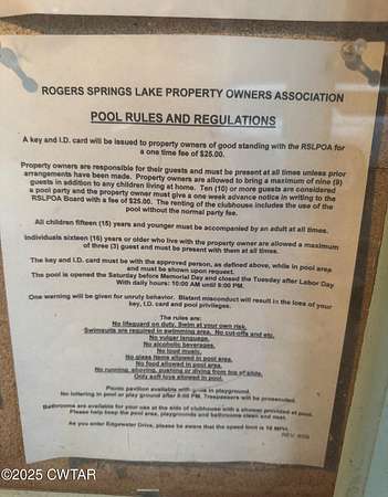 Tucked away in the peaceful Rogers Springs community, this wooded .26-acre lot offers a rare opportunity to enjoy quiet, secure living just moments from the lake. While the lot itself is natural and rustic, the true value lies in its unbeatable location and all the community amenities that come with it. Enjoy access to a community pool, clubhouse with kitchen and bath facilities, and a secure, well-maintained neighborhood that's perfect for retirement, weekend getaways, or year-round living. Whether you love to fish, boat, or just relax in nature, this area offers a safe and serene lifestyle just minutes from the water. If you've been searching for a place to slow down and soak in the outdoors, this is your chance to own a piece of Rogers Springs at a great price. This MLS information is provided for broker assistance only. The actual square footage to be determined by a licensed appraiser. All information provided is deemed reliable but is not guaranteed or warranted by the company, real estate agent or seller and should be independently verified.