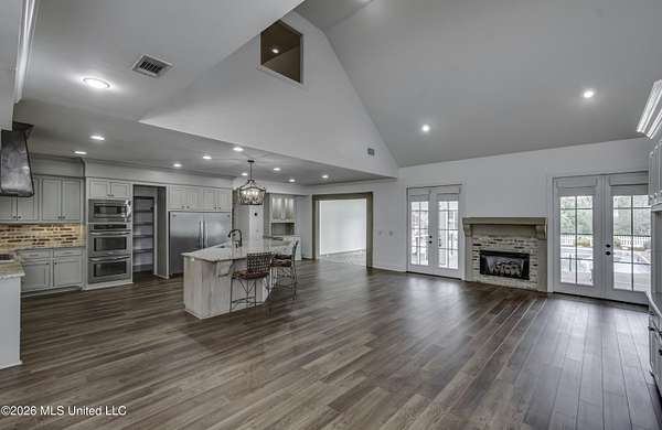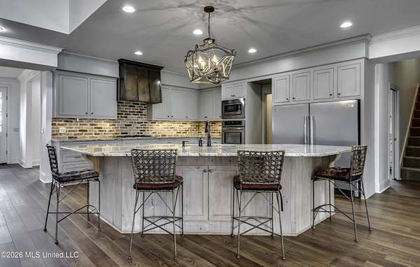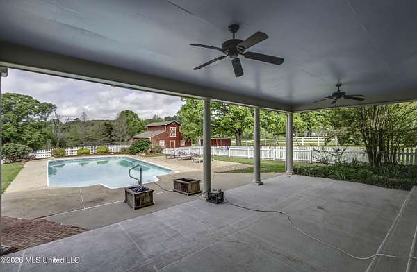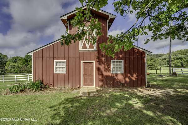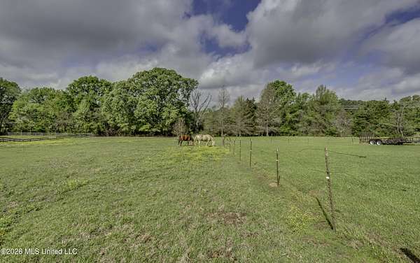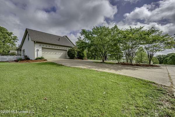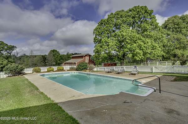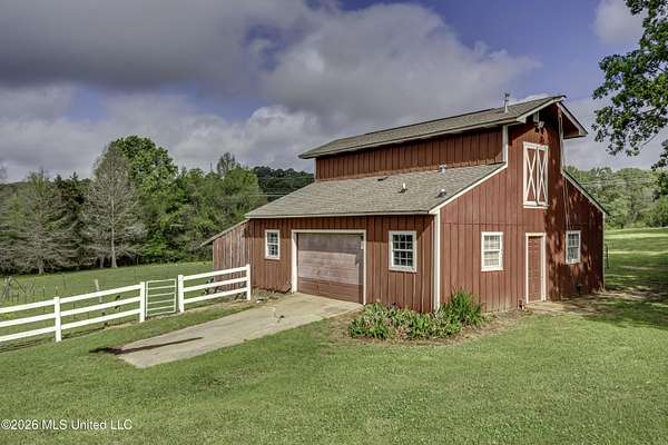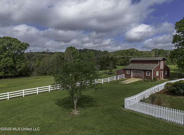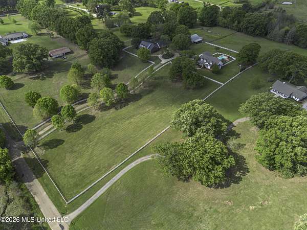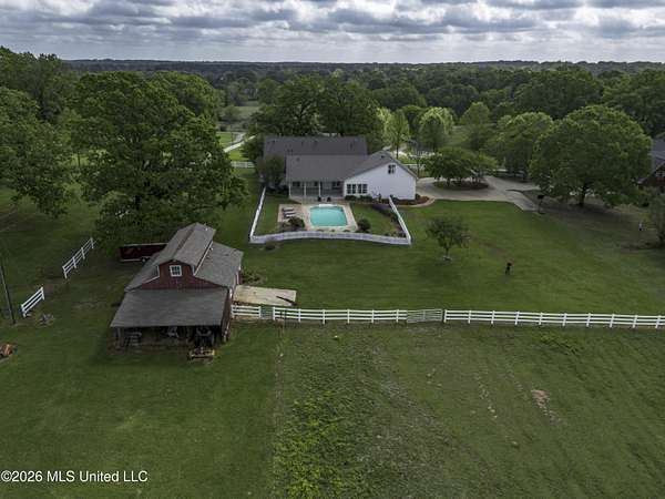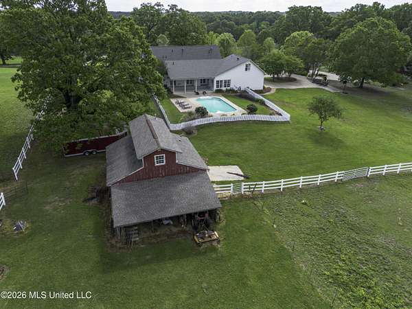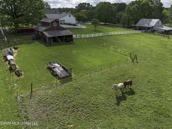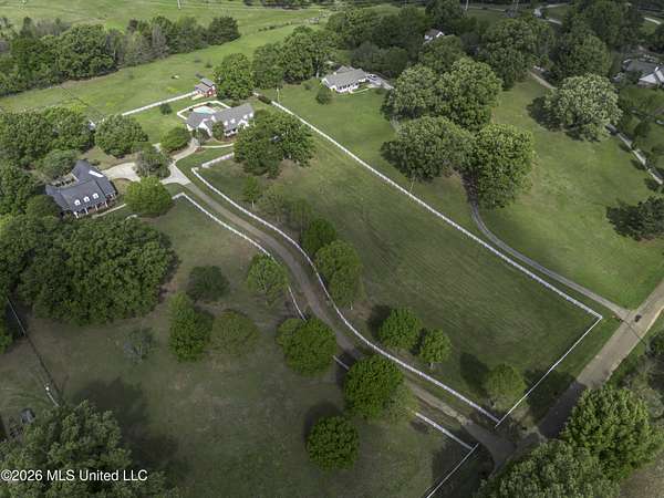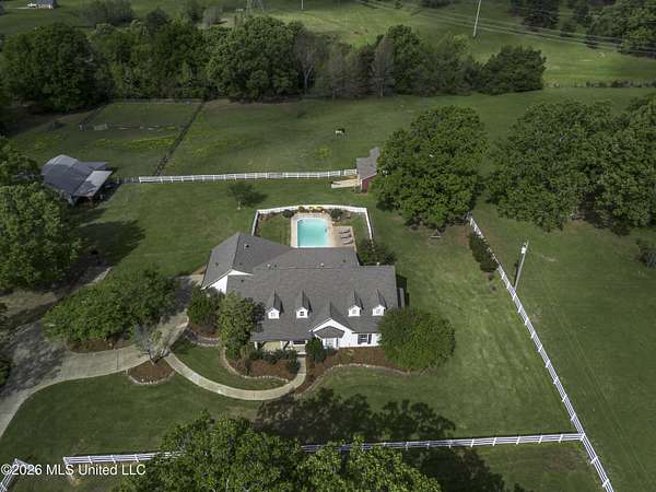 Welcome to a truly exceptional estate nestled on five pristine prime acres minutes away from highly sought-after, award winning Madison County Schools. This picturesque property offers the perfect blend of refined living and serene country charm-an ideal haven for equestrian enthusiasts or those simply seeking space, privacy and beauty!! Framed by majestic, mature oaks and sweeping views of rolling pasture, the setting is nothing short of breathtaking. The property is thoughtfully designed with two fenced pasture areas, providing ample room for horses, along with a well-appointed barn featuring a dedicated workshop. At the heart of the estate sits a beautiful farmhouse-style residence just under 5,000 sq ft. This spacious home offers four bedrooms, 3 full baths, two half baths, along with a generous bonus room--perfect for a media room, playroom, or home office. There is another dedicated office or craft room upstairs. Two separate staircases and a cat walk offer both convenience and architectural interest. Inside, the home has been beautifully updated with new wood flooring on first floor, and freshly painted throughout in Alabaster White creating a bright airy atmosphere. The open concept floor plan is ideal for both everyday living and entertaining. Lots of natural light through large picture windows on the main floor and a beautiful vaulted ceiling in the oversized great room, all overlooking a private setting of gorgeous mature trees, swimming pool, barn and views of acreage. This rare offering is a special southern retreat with exceptional outdoor amenities--all in one of the most desirable locations. Minutes from I-55, premier shopping, award winning schools and great healthcare! A true retreat to call home!!