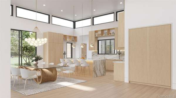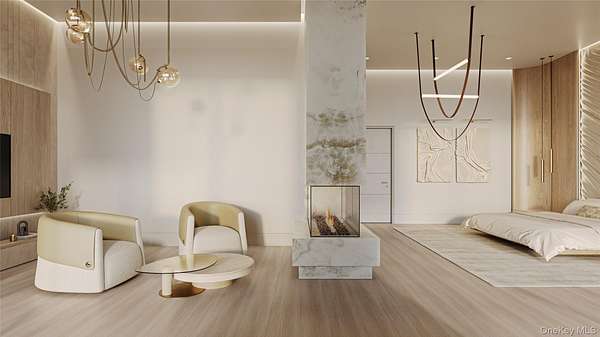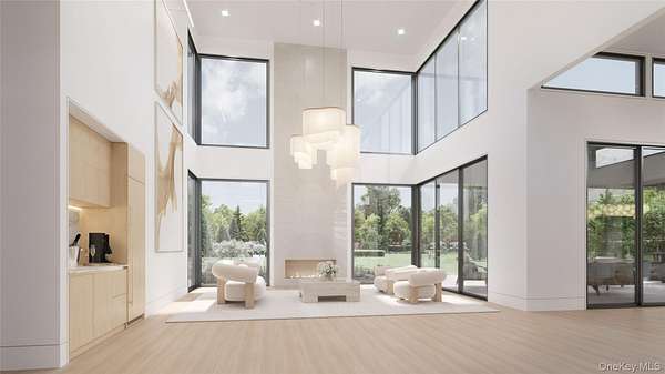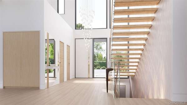 The Oakview Reserve | 4.1 Acre Contemporary Estate | East Hampton Set on 4.1 pristine acres in East Hampton, The Oakview Reserve is a distinguished estate defined by structural integrity, precise detailing, and bespoke millwork throughout. Designed as a fully realized residence, it presents a rare opportunity for a future owner to refine select finishes while preserving the clarity and strength of its architectural vision. Beyond its architectural clarity, the estate offers a rare balance of scale, privacy, and proximity to the cultural heart of East Hampton Village. A custom pivot entry door introduces the home's contemporary presence and opens to a dramatic 23.5-foot double-height foyer filled with natural light. Balanced proportions and refined detailing define the interior, where a sculptural floating staircase rises through the space and a private elevator connects each level with ease. The great room unfolds with quiet confidence, anchored by integrated millwork and a built-in bar, and opens to a covered terrace where indoor and outdoor living flow effortlessly together. The kitchen is appointed with Sub-Zero and Wolf appliances, an expansive waterfall island, and a fully outfitted butler's pantry designed for both daily living and elevated entertaining. Outdoors, a parallel culinary suite and summer kitchen extend the home's entertaining capabilities, allowing gatherings to move effortlessly between indoor and outdoor spaces. Two primary suites offer exceptional flexibility. The main level suite features direct exterior access, a fireplace, custom built in closets, and a spa inspired bath with steam shower and dual vanities. Above, a second primary retreat includes its own fireplace and refined ensuite bath while opening to a private wraparound terrace overlooking the manicured grounds. The lower level is designed for leisure and wellness, featuring a dedicated fitness studio, a spa-inspired suite with private sauna, and a recreation lounge with climate-controlled wine storage and a private tasting area enhanced by integrated eSommelier technology. Provision has been made for a future theatre, creating a private retreat within the home. Outdoors, a 20-by-50 heated Gunite pool with integrated spa serves as a striking focal point, complemented by a separate pool house thoughtfully positioned within the landscape. Across the expansive grounds, the scale of the property allows for the future addition of a private tennis court, further enhancing the estate's recreational offerings. A sunken seating lounge with a sculptural fire feature creates an intimate gathering space for evenings under the open sky. Located less than two miles from East Hampton Village, The Oakview Reserve enjoys close proximity to Guild Hall, the LongHouse Reserve sculpture gardens, and the historic Pollock-Krasner and Thomas Moran studios. Mornings at Main Beach or along the Village Nature Trail transition easily into afternoons along Newtown Lane and evenings defined by seasonal gatherings, live music, and celebrated cuisine. The Oakview Reserve presents a rare opportunity to create a legacy Hamptons estate, enduring in design, elevated in execution, and timeless in presence.
