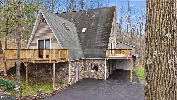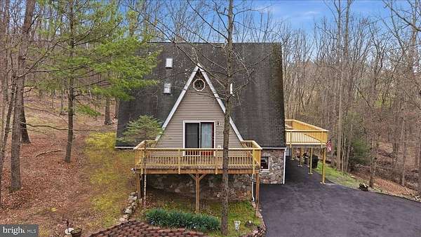 Est $2,781/moTucked away on nearly 9 private, wooded acres, this stunning, unique A-frame retreat offers the perfect blend of space, character, and natural beauty. With 3 spacious bedrooms, 4 full bathrooms, and a versatile bonus room ideal for a fourth bedroom, home office, or guest space, this home is designed to fit your lifestyle. Soaring ceilings and expansive windows create a light-filled interior while capturing picturesque views of the surrounding landscape. Step outside to multiple decks—perfect for entertaining, relaxing, or simply enjoying the peaceful setting. If you’ve been searching for a one-of-a-kind property that offers both privacy and charm, this exceptional home is a must-see.