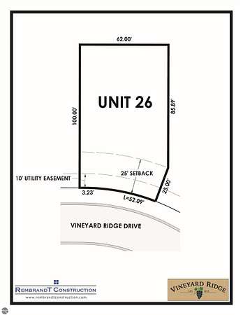 Vineyard Ridge is a premier new development where refined living meets natural beauty. Offering premium lots for sale in its third and final phase of the development, each ready for your dream custom home, designed and built by the renowned Rembrandt Construction. Known for timeless design, expert craftsmanship, and unmatched attention to detail, Rembrandt turns your vision into a legacy home. Nestled at the base of the Old Mission Peninsula, Vineyard Ridge offers the best of both worlds: tranquility and privacy, with the energy of downtown Traverse City just minutes away. Spend your mornings at local beaches, your afternoons exploring nearby vineyards, and your evenings dining at acclaimed restaurants just down the road. Life here is as effortless as it is elegant. Residents enjoy access to a resort-style pool, outdoor spa, grill stations, and a fire pit lounge, perfect for entertaining on warm summer nights. Across the road, the Pelizzari Natural Area offers serene wooded trails for morning walks or weekend hikes. This is more than a neighborhood. Its a lifestyle; tailored, timeless, and uniquely yours.