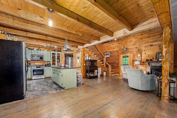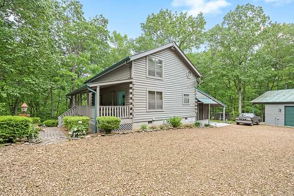 Private retreat! If you are looking for seclusion and peace and quiet- here it is! Gorgeous Log Cabin in the Keith Springs Mountain area but with all the Gatlinburg chalet feels! Featuring 3 bedrooms 2 baths log cabin with a huge 3 car garage/workshop spanning over 1600 sq. ft. with a full bathroom and laundry hookup that is heated, 5.05 acres with trails for for ATV riding or horse back riding right up to the Circle E Guest Ranch, gated entrance, rocking chair front porch, screened porch, attached carport, pantry, all appliances remain, firepit area, bluff views, no restrictions, and low county taxes! The 3rd bedroom is upstairs in the open loft area. This would make a great STR (Air BnB or VRBO) mountain getaway! Located within 15 minutes to Tims Ford Lake, 45 minutes to Scottsboro, AL, and 1 hour from Huntsville, AL.