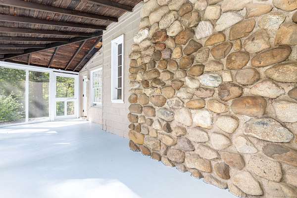 Welcome to 154 Wilbur Ln, a truly distinctive property that sets itself apart from the rest providing over four and half acres of privacy. This home boasts five spacious bedrooms and two full baths, along with a large versatile studio or den that provides additional options for your needs. As you enter, a convenient mudroom is to the left and down the hall leads you into the kitchen where you will be greeted with lots of natural light and gorgeous windows and skylights. From the kitchen enter the dining room, where a full wall of windows fills the space with scenic views. It's perfect for both intimate dinners and lively gatherings. After you enjoy your dinner step out onto the deck to watch the sun go down or access the screened in porch for those rainy evenings. The dining room leads to the expansive living room featuring a stunning fieldstone fireplace, a lofty cathedral ceiling with wooden beams, a built-in bookcase and a large sliding glass door. Go up to the second floor with one of the two access points to discover the primary bedroom that has wall to wall windows, a walk-in cedar closet and is complete with a full bath and a claw tub.The attached barn provides ample storage with five garage bays, two horse box stalls, and a walk-up attic.Lots of open space above the garage. This exceptional property, with its unique features and flexible layout, is perfect for a variety of lifestyles.