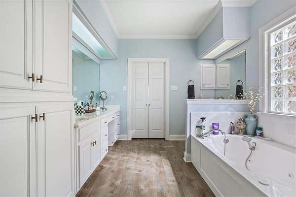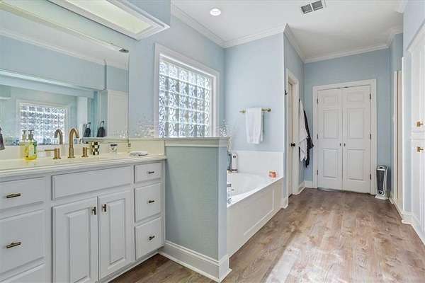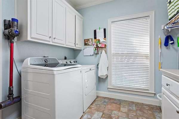 The well-appointed kitchen is ideal for the family cook, offering abundant storage, quality appliances, and plenty of room to gather. The downstairs primary suite provides a peaceful retreat with a beautiful ensuite and direct access to the patio. Upstairs, you'll find three guest bedrooms, all with walk-in closets, two full bathrooms, and a large bonus room pre-wired for surround sound--perfect as a media room, playroom, or additional living space.
