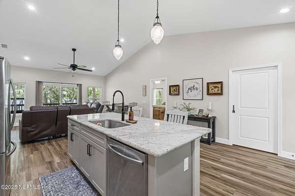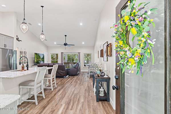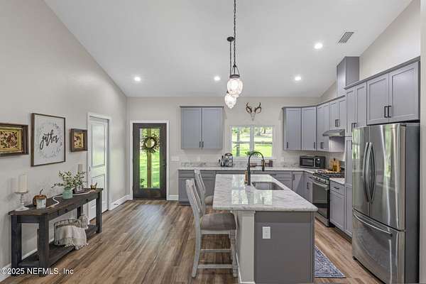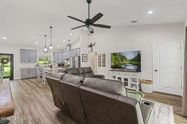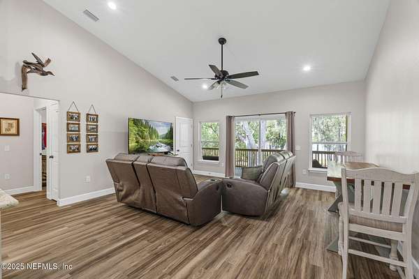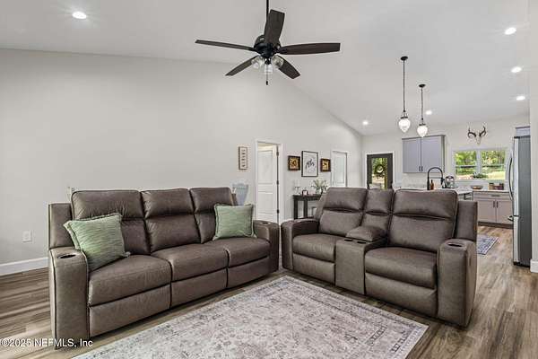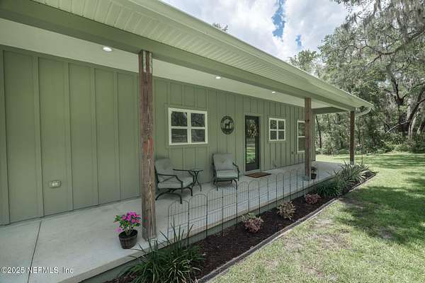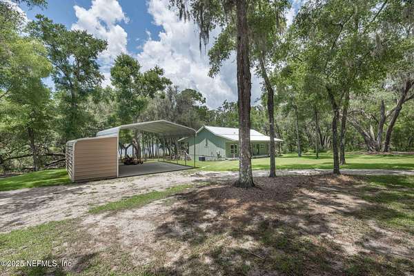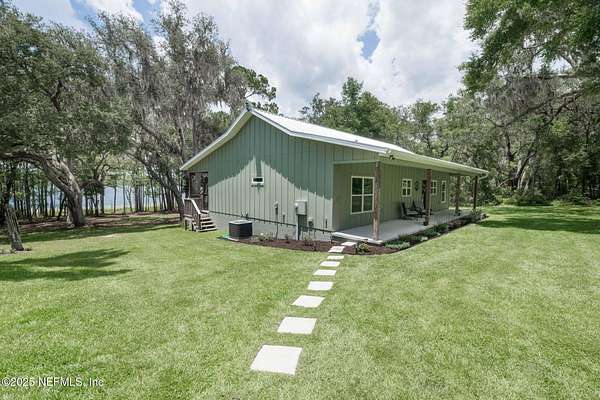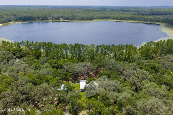 Welcome to 20 acres of peace, privacy, and natural beauty complete with 400 feet of lake frontage on serene Lake Goodson. Whether you're dreaming of country living, weekend getaways, or a full-time retreat, this property is a true gem. Built by Cody West Construction, this 1,600 sq ft home offers a bright and open layout with 3 bedrooms, 2 bathrooms, and large windows that bring the outdoors in. From the moment you walk through the front door, you'll be greeted with natural light and uninterrupted lake views. Located just 30 minutes from both Gainesville and Palatka, you're close to dining, shopping, and entertainment, but far enough to truly unwind. The designer chef's kitchen offers 42" soft-close cabinetry, premium quartz countertops that span the length of two full walls, and a gas range for elevated cooking experiences. Enjoy the durability and elegance of luxury vinyl plank flooring throughout the main living areas, with beautifully tiled wet spaces and no carpet in sight. The expansive owner's suite offers ample room for your ideal layout with room for a cozy reading nook or home office. The en-suite bath is a true retreat, featuring dual sinks and a spacious walk-in shower adorned with custom tile that extends to the ceiling for a refined, designer finish. A detached carport with a storage room gives you plenty of space for tools, lawn gear, and outdoor toys. And with your own well, you'll enjoy the bonus of no water bill. Step out onto the oversized back deck perfect for entertaining, relaxing, or taking in the incredible sunsets over the water. The land is full of life, with frequent visits from deer, turkey, and other local wildlife, plus prime bass fishing right in your own backyard. This property has everything you need for a slower, richer pace of life. Schedule your tour today!