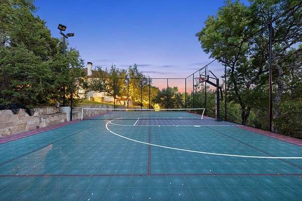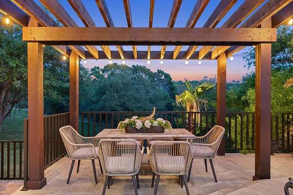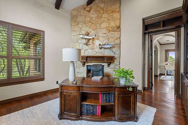 Set above the waters of Lake Georgetown, 1540 County Road 262 spans eight private, tree-covered acres that feel both peaceful and tucked away. Built in 2008, this 5,200-square-foot gated estate blends comfort, privacy, and a strong connection to the surrounding landscape. Inside, a curved staircase and tall ceilings create an open, welcoming first impression without feeling overly formal. Warm wood floors carry throughout the home, tying together a layout designed for both entertaining and everyday living. The kitchen sits at the center, opening easily to indoor and outdoor spaces, all oriented toward the views. The main-level primary suite is a quiet retreat, with its own fireplace, bay windows that bring in natural light, and a spa-like bath featuring a clawfoot tub, walk-in rain shower, dual vanities, and two walk-in closets. Upstairs, three additional bedrooms, two with ensuite baths are arranged around a flexible living space that opens to a veranda overlooking the pool and the Hill Country beyond. Outside, the home really shines. A west-facing patio with a fireplace is perfect for evenings and sunsets, while the infinity-edge pool and spa blend into the treetops and lake views. An outdoor kitchen, fire pit, and sport court for pickleball, basketball, and baseball make the space ideal for both relaxing and gathering. A dedicated pool bath adds an extra layer of convenience. Surrounded by protected land around Lake Georgetown, the setting stays naturally beautiful and private, while still being about 30 minutes from downtown Austin and close to Georgetown's historic square, restaurants, and local arts scene. With practical features like well water, septic, gray water irrigation, and a three-car garage, the home is as functional as it is beautiful. This is a property designed to be lived in, enjoyed, and held for years to come.
