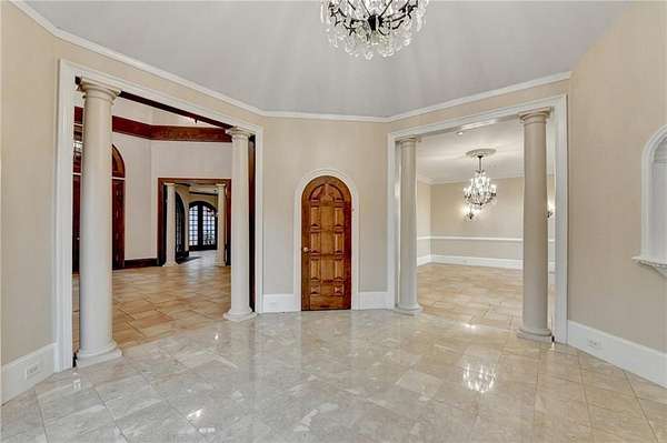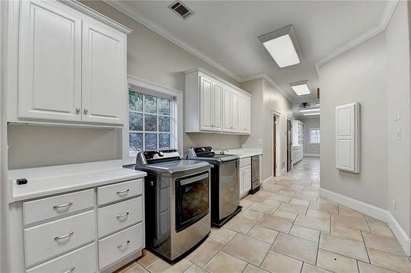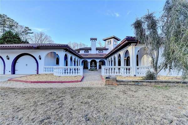 This stunning ESTATE HOME with a PRIVATE LAKE, featuring a meticulously designed Main House Overview: main house with 6,000+ sq. ft. of living space and numerous high-end amenities. Upon entering, custom-carved double wooden entry doors open into a formal solarium-style foyer, which flows into the expansive family room with a cathedral-style ceiling and cedar beams. The room is highlighted by a remote-controlled chandelier and a grand fireplace. Beautiful double doors open to a front courtyard with serene lake views, as well as a massive rear courtyard featuring a water fountain and outdoor rock fireplace. The chef-inspired kitchen is fully equipped with top-of-the-line stainless steel appliances, including a refrigerator, double ovens, microwave, warming drawer, trash compactor, wine fridge, and a Viking gas stove--ideal for any culinary enthusiast. Adjacent to the kitchen is a laundry/mudroom and a pantry that spans the length of the home, providing ample storage, a second dishwasher, and a half bath.The left wing of the home includes a half bath for guests, as well as a stately library/office, which can also serve as a 4th bedroom. This space boasts a fireplace, custom bookshelves, captain's paneling, and a private entrance to a patio with lake views. The luxurious primary suite features a sitting area with a fireplace, a private patio overlooking the lake, a wet bar, two custom closets, and a spacious ensuite bathroom with dual vanities, two toilets, a soaking tub, and a separate shower. The hallway, with arched windows and doors leading to the courtyard, connects to two additional bedrooms, each with a private bath--one featuring a covered patio with lake views. A dedicated entertainment/media room with a full bar, sauna, and lake views completes the living spaces. Throughout the home, you'll find exquisite tile floors, arched doorways, and elegant entryways, all contributing to the refined aesthetic. Guest House/Office: The guest house or office space offers a full kitchen, living room, two bedrooms, and two bathrooms. An oversized garage provides abundant storage space, and the entire guest house is designed with convenience and comfort in mind. This exceptional estate offers the perfect blend of privacy and luxury, while being conveniently located just a short drive from GA-Hwy 11, Historic Covington, Social Circle, Monroe, and minutes to I-20. This dream property is a must-see--schedule your private showing today!