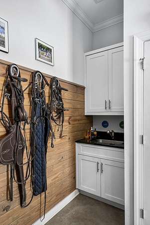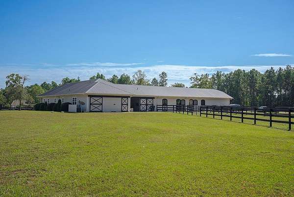 Firstlee Farm - A modern sanctuary for horse and rider. Tucked within Aiken's crown jewel, Three Runs Plantation, this exceptional property captures the essence of refined equestrian living. Spanning 2,400 acres of private trails, world-class arenas, a cross-country schooling field, and a welcoming clubhouse complete with fitness center and pool, Three Runs celebrates every discipline with effortless grace. It's not just a community-it's a lifestyle devoted to the art of horsemanship. At the heart of it all lies Firstlee Farm, a sophisticated, custom-designed huntbox by Wolf Construction, offering 1,837 square feet of beautifully crafted living space on 5.57 tranquil acres. This residence redefines contemporary country living with 2 bedrooms, 2 baths, and an open, sun-filled layout that blends luxury with simplicity. 10-foot ceilings, designer finishes, and a calm, polished aesthetic create a sense of peaceful refinement that invites you to unwind and recharge. Designed with your horses' comfort in mind, the barn features 4 elegant European-style stalls with Dutch doors, automatic waterers, fly system and fans, along with a wash/grooming stall and a heated/cooled tack room complete with sink and laundry hook-up-every detail crafted for function, flow, and elegance. Outside, individual fenced runouts lead to four irrigated pastures with heated automatic waterers, ensuring your horses enjoy year-round comfort. The 100'x200' all-weather arena, featuring sand/GGT footing and irrigation, offers a superior riding experience in any season. A gated entry ensures privacy and peace of mind, while the short hack to Three Runs Plantation's premier amenities makes this property as convenient as it is captivating. Firstlee Farm - Where beauty, balance, and equestrian excellence live in perfect stride.