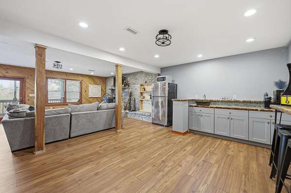 Est $2,483/moTucked away on 4 scenic acres, this charming log cabin offers rustic appeal with comfortable living. You enter into an open concept family room and kitchen, complemented by 2 bedrooms and a full bath on the main level. The finished basement offers an additional family room or rec area with a wood burning stove, wet bar, additional bedroom and updated full bath- ideal for a private primary suite or guest retreat. Peaceful country setting and just minutes from Lexington and Richmond with easy access to I-75.