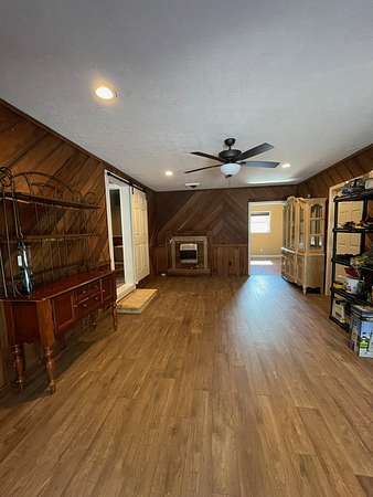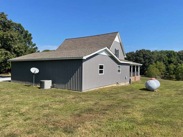 SECLUSION!! Custom built home on 54+/- acres just minutes from the Kentucky state line. Uniquely designed three bedroom two bathroom home features: Custom kitchen cabinets with granite and butcher block countertops, farmhouse sink, stainless steel appliances including gas range/oven and tile backsplash. Open floor design with high ceilings and a loft room overlooking the living area, 10x21 master suite with bathroom and walk in closet, brick veneer tile flooring in hallway-guest bathroom and utility room. The original 480 square feet "cabin" was built in 1975 and has the 10.5x 12.5 bedroom, the den and plenty of storage areas. The property is a blend of 25 acres in rotation crop, 10.5 +/- acres of open yard/pasture, and 18.5+/- acres of marketable timber. Barn/storage building on edge of yard. There is also a pond with a dock. Annual crop income is $2,750.