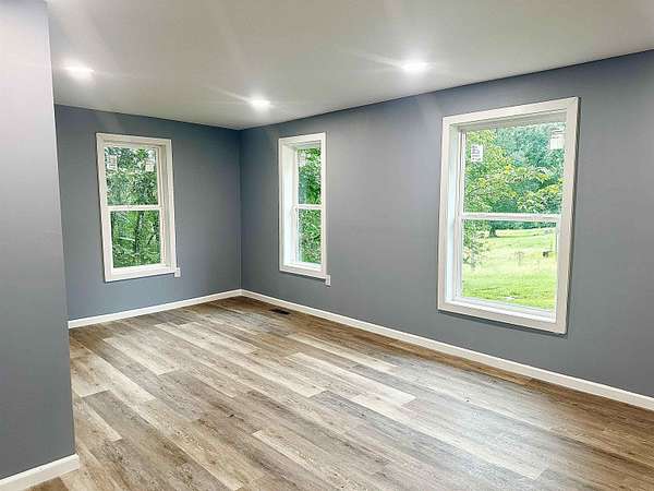 Cute & cozy home totally rebuilt with approximately 16 acres! This home was taken down to the studs and features brand new electrical/plumbing, duct work, windows, roof, flooring, and MUCH MORE! There's 3 bedrooms and 2 full baths. The tall crawlspace allows for an abundance of storage space. The lot is wooded with mature trees and there's an open space for kids to run and play. Don't miss this affordable home with acreage near town. Move in ready! The lower portion of the back of the property is in a flood zone. Buyer to verify all information.
