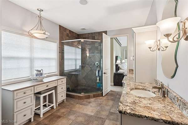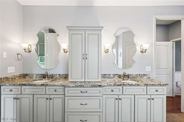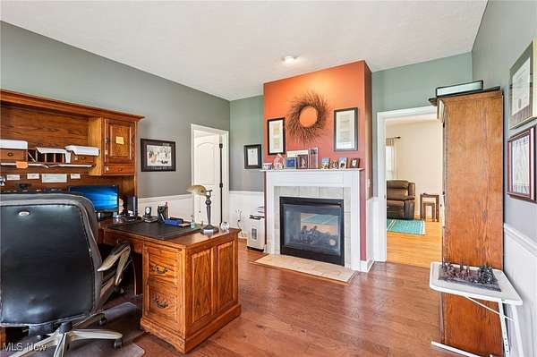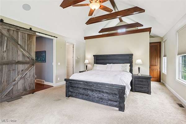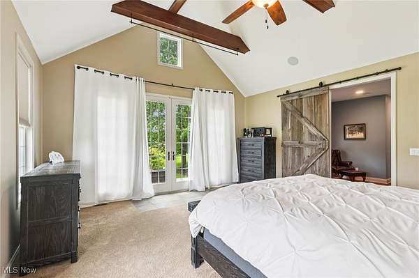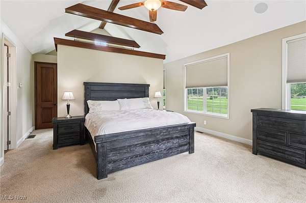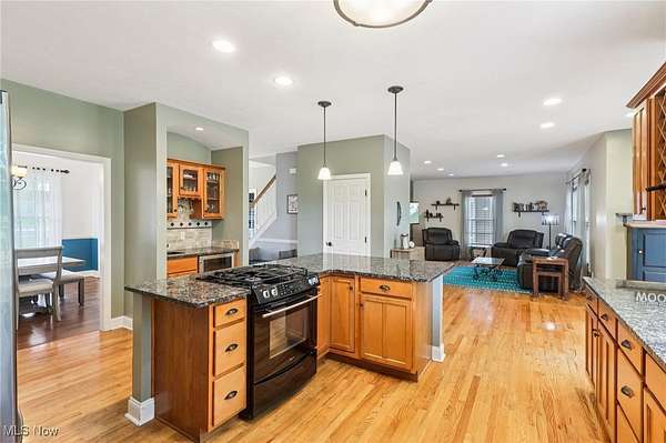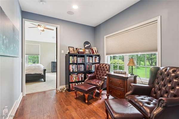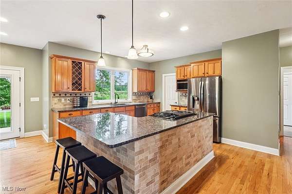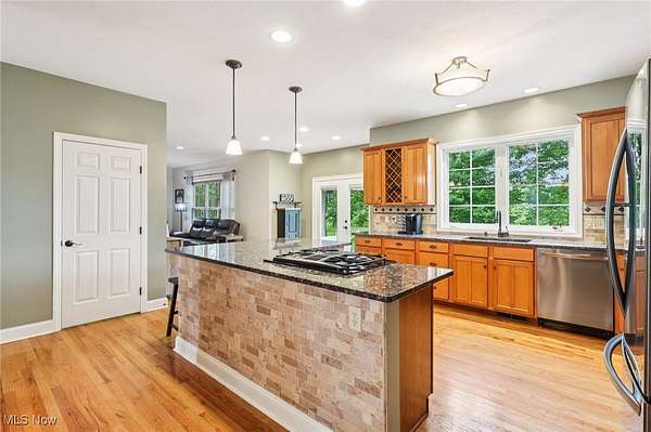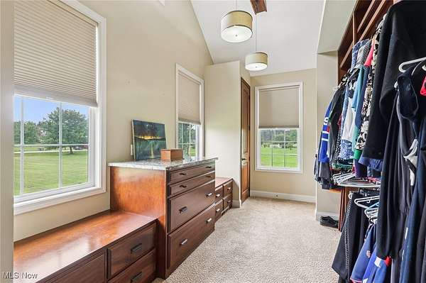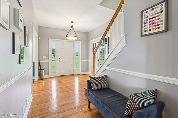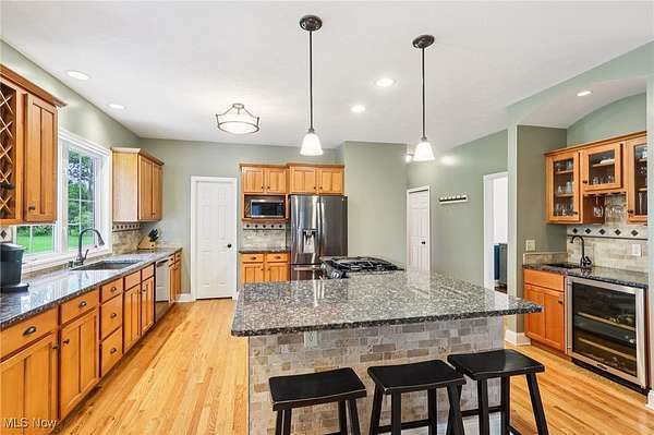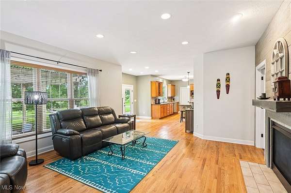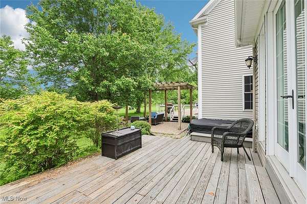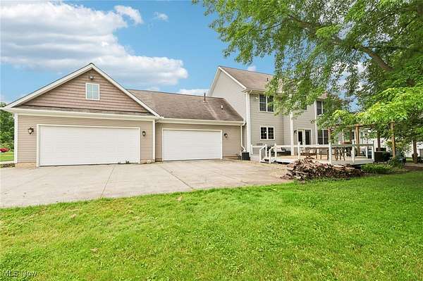 Welcome to this charming 5 BR, 3.5 BA home on 3 peaceful acres in the West Geauga Schools; a short drive to Chagrin Falls brings you to shops and restaurants. The first floor boasts a beautifully updated, eat-in kitchen with maple cabinets, granite counters, walk-in pantry, copper sink, and wet bar. The kitchen is open to the bright family room with gas log fireplace surrounded by a structured wood wall. The newer back hall mudroom with built-in cubbies, dog kennels and a first-floor laundry leads to the 1/2 bath and kitchen. The first floor owners' suite features a sitting room, vaulted bedroom with a charming barn door, French doors to a private deck and hot tub, large walk through closet with built-ins and a gorgeous bath with separate shower, dual sinks, private commode room and built-in chest for linens. An open stairway leads to the second floor, featuring another owners' suite with walk-in closet and private bath. There are three other bedrooms with generous closet space plus a second floor laundry. The lower level is finished into a large entertainment/ bar area with two separate rooms for office or workout space, currently used for the owner's recording studio. The main deck was rebuilt in 2022 and a lovely stone patio overlooks the expansive yard. The oversized 3-car garage has extra room for storage. Recent upgrades include exterior drainage (2025), sump pump (2025), furnace (2024) and radon system (2023). Close to major hospitals and a short drive to shopping and restaurants, you'll enjoy the best of both worlds this lovely home as to offer!