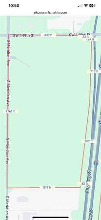 Est $34,739/mo35 acres. 15400 S Meridian Ave and SW 149th. I-44 frontage. Prime access to I-44. Cleveland County. I-44 ramp access. Zoned I-2. No city water or sewer. Has electric and ong. Pivot well. Overall elevation of the property has been raised approximately three, maybe more feet. SMC engineering has initiated process of possibly getting the elevations revised with FEMA and a new Alta survey.
