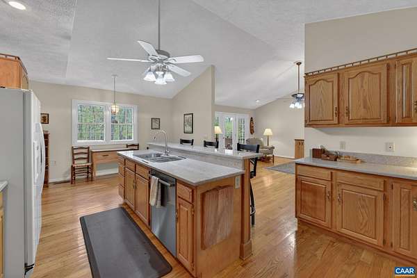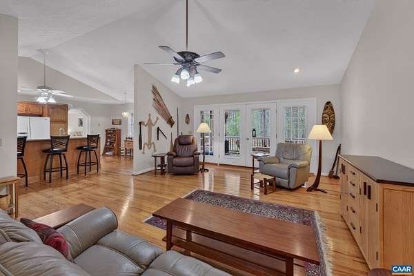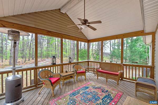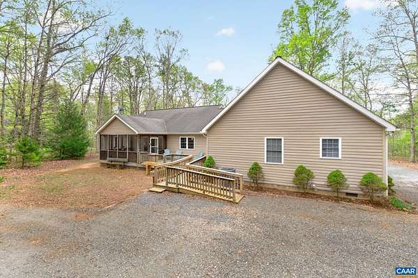 Open Sunday 2-4 pm! Welcome to your private retreat in beautiful Gordonsville! Situated on 2.8 level, mostly wooded acres in Orange County, this well-maintained one-level home offers comfort, space, & peaceful country living. Take your pick of the outdoor living spaces: a full covered front porch, large rear deck, or the screened in porch with a vaulted ceiling overlooking the wooded backyard. Inside, the great room features another vaulted ceiling and a wall of windows onto the porch. Hardwood floors run throughout the main living areas including in the kitchen featuring another vaulted ceiling, quartz countertops, abundant cabinetry, and breakfast bar seating. The split-bedroom design provides added privacy for the owner, and the spacious primary suite features French doors to the rear deck, ensuite bath with his and hers vanities, plus a whirlpool tub. A 13x27 bonus room over the oversized 650 sq ft garage provides flexible space perfect as a game room or movie room. The DIYer will love the detached 16x20 workshop with electricity and wood stove. Located just 2 miles to Rt 15, and only 8 minutes to either Downtown Gordonsville or Downtown Orange.
