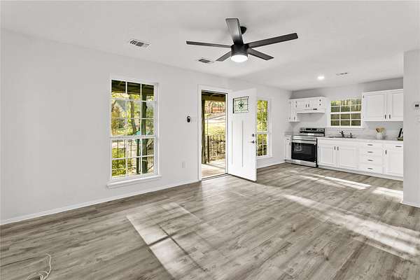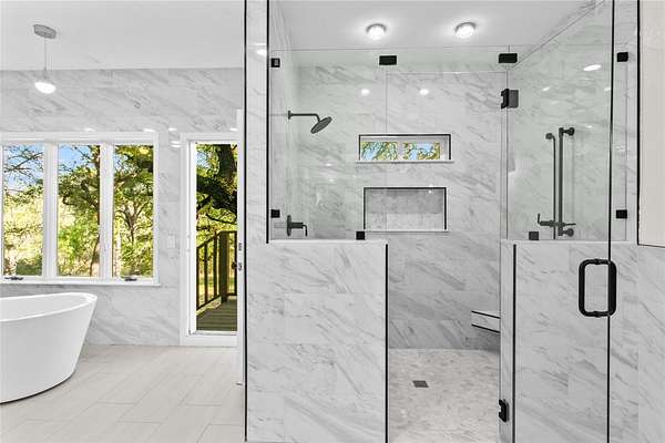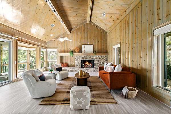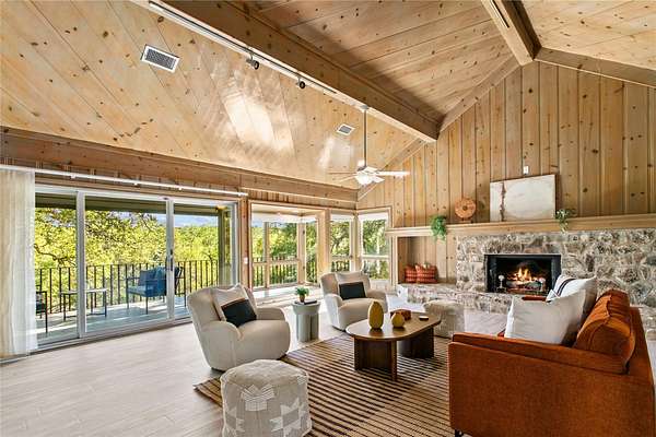 Tucked away in the highly desirable Fitzhugh Place community, this private and peaceful property offers a rare blend of Hill Country charm and modern updates. Backing directly to Barton Creek and neighborhood greenspace, the setting delivers incredible views, mature oak trees, and a sense of seclusion that's hard to find. Originally built in 1991, the main home has been fully renovated to maximize natural light and showcase the surrounding landscape. Inside, you'll find an inviting layout featuring 4 bedrooms, 3 full baths, a private office, formal dining room, spacious family room, and an oversized sunroom perfect for enjoying the views year-round. sqft includes the 3,173 main home and 700 sqft The fully fenced property includes an automatic gate for added privacy and convenience. In addition to the main home, there's a charming 1-bedroom, 1-bath guest house with its own private yard-ideal for guests, extended family, or potential rental use. Additional improvements include a detached 3-car garage, RV carport, and a large storage building/well house. From its unique design to its unbeatable setting and access to top-rated schools, this is a one-of-a-kind property that truly has it all.