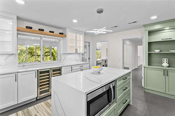 - Dishwasher, Free-Standing Gas Range, Microwave, Wine Refrigerator