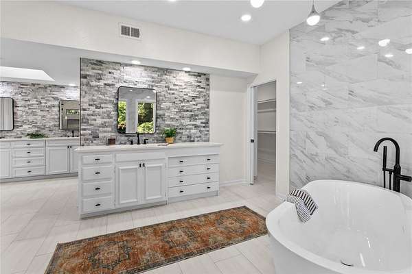- Bookcases, Built-In Features, Ceiling Fan(s), Ceiling-High, Double Vanity, Entrance Foyer, Kitchen Island, Multiple Living Areas, Quartz Counters, Study/Home Office, Two Primary Closets, Walk-In Closet(s)