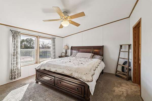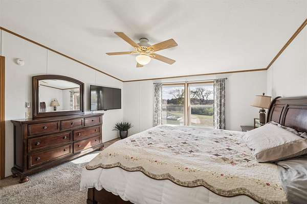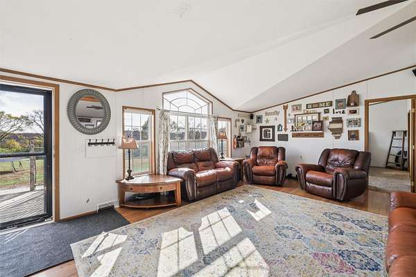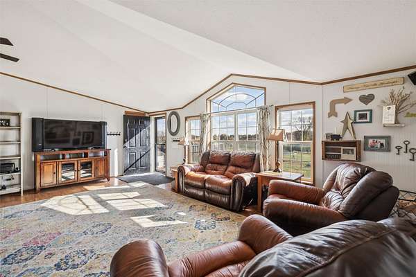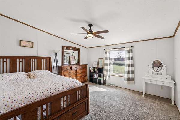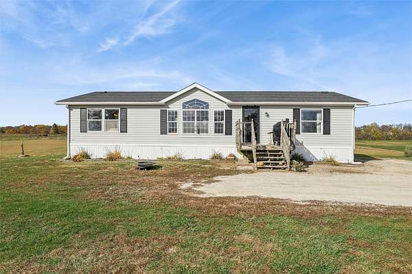 Endless possibilities on nearly 5 acres of peaceful countryside! This 3-bedroom, 2-bath manufactured home sits on 4.98 acres off a private drive, offering beautiful views and plenty of room to enjoy country living your way. With no covenants or restrictions, you're free to bring animals, build a dream home, add a shop, or simply enjoy the open space. The home features an open layout with updated flooring, vinyl siding, and an asphalt roof for easy maintenance. Acres of invisible pet fencing is already installed, and the mix of open land and mature trees provides the perfect blend of usable ground and natural beauty. Just under 30 minutes to Jordan Creek Mall, this is a rare opportunity to own an acreage close to town with room to grow and limitless potential!