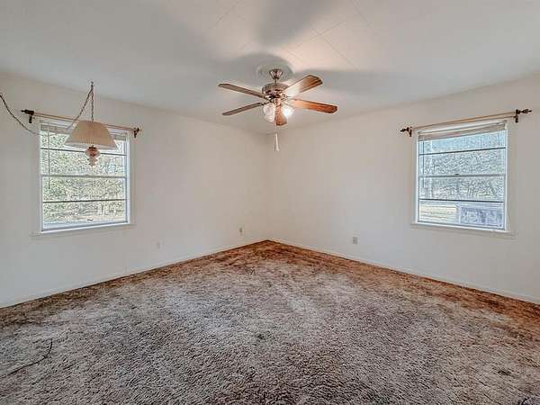 Discover the possibilities with this 4-bedroom, 2-bath home situated on 17.64 acres perfect for privacy, recreation, or agricultural. Located right outside peaceful Kerens, Texas, this property offers room to spread out and make it your own. Inside, you'll find a spacious layout featuring a large living room with a wood-burning fireplace, a formal dining room with its own wood-burning stove, and a generously sized laundry room equipped with abundant shelving for storage. The bedroom off the front entrance is ideal for a home office, study, or guest room. All bedrooms include walk-in closets, and the main bathroom is equipped with a handicap-accessible tub. Step outside to enjoy the covered back patio, perfect for outdoor relaxation or shaded parking. The backyard includes an old pool house offering even more space for tools, equipment, or hobbies. This property is a true fixer-upper, ready for someone with vision to bring new life to its great bones and impressive acreage. With its combination of space, character, and potential, this Kerens gem is a rare opportunity you won't want to miss!