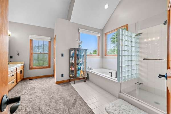 - Attic Access, Bath Sinks Double Main, Breakfast Bar, Built-In Features, High Ceilings, Kitchen Island, Paddle Fan, Smart Thermostat, Supplemental Storage, Vaulted Ceiling(s), Walk-In Closet(s)