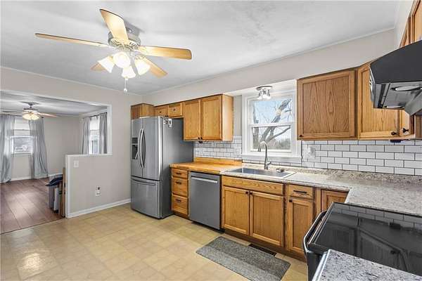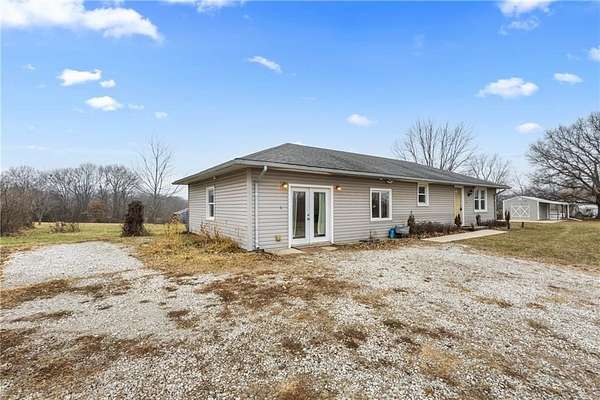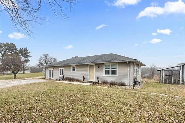Welcome to this inviting Excelsior Springs home, where practicality, modern upgrades, and comfortable style come together in one affordable package. The main floor offers an impressive 1,824 square feet of living space, thoughtfully arranged for both everyday living and entertaining. Flanking the kitchen are two versatile rooms-ideal for a formal dining room, cozy sitting area, or a productive home office. Electrical was updated in 2007. Nestled on 4.82 picturesque acres, this property delivers a true country retreat with all the conveniences you need. A 700-square-foot dual-stall barn with a hayloft provides ample storage or hobby space. The 12*20 temperature-controlled workshop, built in 2018, features a 14-foot south-facing workspace, a covered east-side porch with lighting, and exterior outlets. The shed is wired for power and network connectivity and includes two installed security cameras. A functional chicken coop is also wired for heat lamps. Nature lovers will appreciate the variety of plantings, including one apple and three pear trees, as well as walking trails that wind through the acreage. A serene pond completes the landscape, offering a peaceful place to relax. The septic tank and main line were replaced in 2024 for added peace of mind. A Husqvarna zero-turn mower stays with the property. All appliances stay-including the refrigerator, microwave, and stackable washer/dryer-and the convenience of main-level laundry makes daily living even easier.