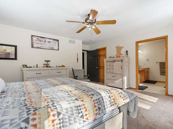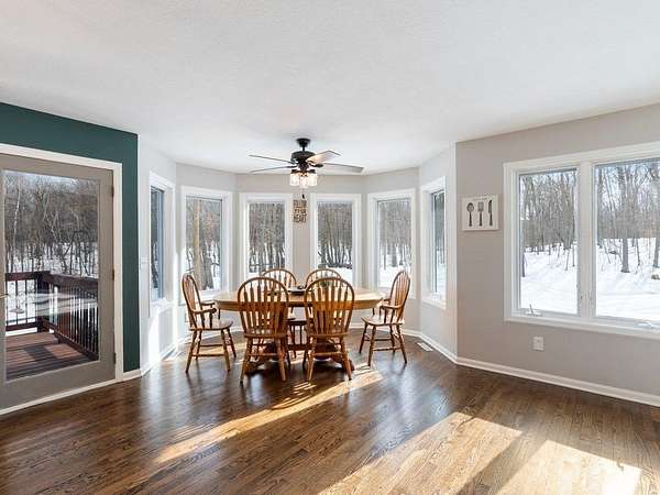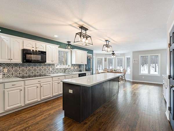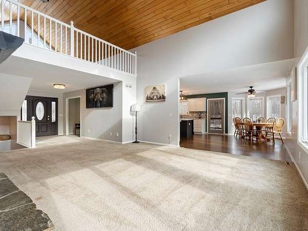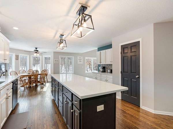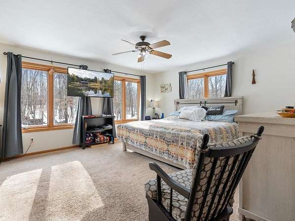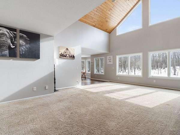 Welcome to this exceptional 6-bedroom, 4-bathroom home located on Lake Ave in Brainerd, offering shared access to South Long Lake and set on a private 3.22-acre lot. From the moment you step inside, you'll appreciate the welcoming entry with vaulted tongue-and-groove ceilings that set the tone for this spacious and thoughtfully designed home. The grand living room features soaring ceilings and a dramatic floor-to-ceiling stone fireplace, creating a warm and inviting gathering space. Open to the loft above, this area is filled with natural light and offers a stunning focal point. The chef's kitchen is a true standout, boasting quartz countertops, designer two-tone cabinetry, an expansive center island, and abundant windows that flood the space with light. Recently sanded and stained hardwood floors add a refreshed and timeless feel throughout the main living areas. The main level primary suite provides a private retreat with a massive walk-in closet and an ensuite bathroom featuring double vanities. Additional main-level conveniences include easy access to the backyard deck, perfect for relaxing or entertaining. The fully finished lower level offers even more living space with a large family room, walk-out access to the patio, a second stone fireplace, three additional bedrooms, an office, ample storage, and a utility room. Additional highlights include a heated and attached garage, paved driveway, durable steel siding, and fiber internet. This property offers the perfect blend of space, comfort, and "up north" living with lake access--ideal for full-time living or a retreat close to everything Brainerd has to offer.