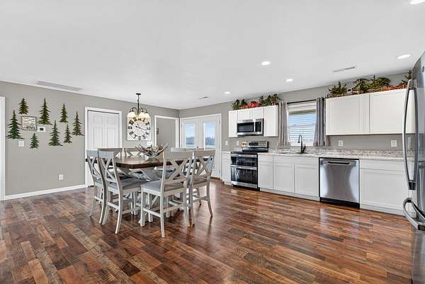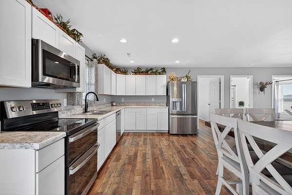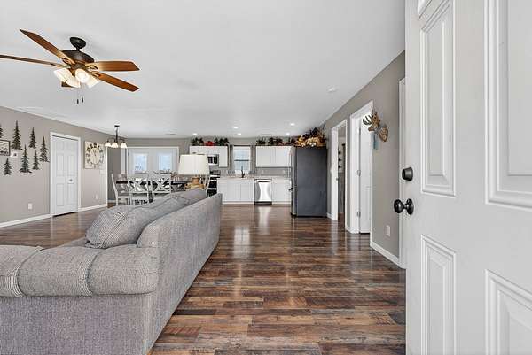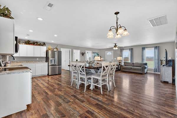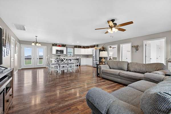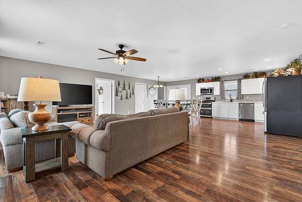 Built in 2024 and designed for everyday living without the worry. This 3 bedroom, 2 bath home sits on almost 2 acres, giving you space, privacy, and quiet that is hard to find. The open concept layout flows easily from the living area into a spacious kitchen featuring stainless steel appliances, a double oven, generous cabinet space, and a large pantry that actually works for real life. The primary suite is thoughtfully positioned on its own side of the home, separate from the other bedrooms, and offers a true retreat with an ensuite bath and not 1, but 2 walk in closets. A separate laundry area provides extra room for storage so everything has a place. An attached 2 car garage adds everyday convenience and functionality. Step outside to an extremely large covered back deck that quickly becomes the favorite spot of the home. Whether it's quiet mornings or long evenings, you may find yourself never wanting to leave. Entire home equipped with spray foam insulation which adds to energy efficiency of the home. With the roof, HVAC system, tankless hot water heater, and septic all from 2024, the big ticket items are already taken care of. Add in the ability to enjoy your space without hearing your neighbors, and this home offers comfort, peace, and confidence all in one.